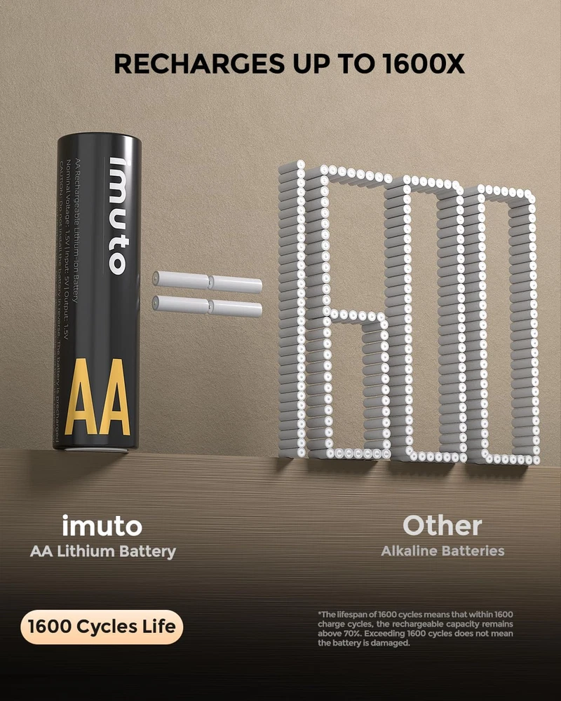 Rechargeable Lithium AA Batteries With Fast Charger 3000mWh High Capacity New ✅ imuto Rechargeable Lithium AA Batteries with Fast Charger, 8 Pack 3000mWh High Capacity Double A Batteries, 1.5V Constant Output AA Li-ion Batteries, Recharge up to 1600x Times Product Description: The iMuto Rechargeable Lithium AA Batteries offer high performance and a long-lasting solution for powering your devices. With a capacity of 3000mWh, these batteries provide reliable 1.5V constant output, ensuring that your gadgets stay powered for longer. This 8-pack is designed for high efficiency, allowing you to recharge each battery up to 1600 times, making them an eco-friendly alternative to traditional single-use batteries. The included fast charger ensures quick and convenient charging, making it ideal for everyday use in a variety of devices. Features: High Capacity: Each battery provides 3000mWh of power for long-lasting use, reducing the frequency of battery replacements in your devices. Long Lifespan: These AA lithium batteries can be recharged up to 1600 times, offering a cost-effective and eco-friendly solution. Consistent Output: Delivers a steady 1.5V constant output, ensuring reliable performance in electronics, toys, remotes, and more. Fast Charging: Includes a fast charger that quickly replenishes the batteries, minimizing downtime and ensuring you're always ready to use your devices. Rechargeable and Economical: With the ability to recharge up to 1600 times, these batteries reduce waste and save you money on disposable options. Wide Compatibility: Ideal for use in various electronic devices such as flashlights, remote controls, digital cameras, and more. Eco-Friendly: Reduces the environmental impact of disposable batteries, making them a sustainable choice for powering your devices. Convenient and Ready to Use: The 8-pack ensures you have plenty of power available for your devices, and the fast charger makes recharging easy and efficient. Unit Count 8.0 Count Battery Cell Composition Lithium Ion Product Dimensions 3.74 x 2.95 x 2.17 inches Item Weight 9 ounces Batteries 8 AA batteries required. (included) Recommended Uses For Product function(f) {var _np=(window.P._namespace("DetailPageProductOverviewTemplatesJava"));if(_np.guardFatal){_np.guardFatal(f)(_np);}else{f(_np);}}(function(P) { P.when('A').execute(function(A){ A.on('a:truncate:po-attribute-truncate-3:updated', function(data) { var isTruncated = !data.truncateInstance.getIfTextFits(); var seeMoreElement = document.getElementById('po-attribute-see-more-id-3'); if(seeMoreElement) { seeMoreElement.style.display = isTruncated ? '' : 'none'; } }) }); })); Power Tool, Camera Flash, Photographic Lighting, TV Remote, Remote Control Vehicle, Radio, Camera, Clock, Gaming Controller See more Number of Batteries 8 AA batteries required. (included) Size 8AA+8 slot charger Shipping Fast shipping is very important for us. Our standard USA shipping service is FREE. Your order will be shipped within 1-2 business days upon full payment received. Your order will be delivered within 1-3 business days after the handling time. We only ship to the confirmed address. We reserve the right to cancel any order for any reason at any time. We are not responsible for undeliverable addresses. Returns and payment We offer a 30 days return policy from checkout winning date. FeedBack Your feedback very important to us, after you get your package and you are satisfied with our service please leave us positive feedback If you have any problem with your order / any questions please before leave any type of feedback For any questions, using eBay contact system Please visit our eBay store to check out other items for sale! Thank you for shopping at our store.