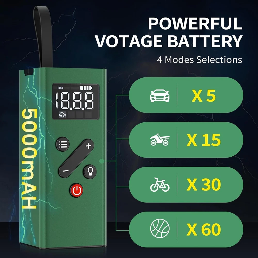 Rechargeable Mini Tire Pump with Digital Display for Cars, Bikes & Sports Gear ‹ › ‹ › ‹ › ‹ › ‹ › ‹ › ‹ › ‹ › Rechargeable Mini Tire Pump with Digital Display - Perfect for Cars, Bikes & Sports Gear Product Features: Excellent Material & Portable Design: Crafted from high-quality alloy shell that is shock-resistant and offers superior heat dissipation. Comes with a silicone handle strap and a compact storage bag, making it easy to keep in your car, bike rack, or backpack. 2X Fast Inflation & Automatic Stop: Delivers impressive inflation power up to 150psi, quickly inflating car tires while automatically shutting off at your desired pressure to prevent overinflation. (Not suitable for medium and large heavy-duty trucks!) Powerful & Long Lasting Battery: Features a robust 2500mAh *2 built-in rechargeable battery, fully charging in just 2.2-2.5 hours. Inflate a 195/55/R15 car tire up to 5 times (0-36psi) on a single charge, eliminating concerns of quick battery drain. Dual Charging Methods: Comes with a 9.8 feet DC 12V power cable for emergency outdoor situations, as well as a USB charging cable for everyday use. LCD Digital Display & 4 Inflation Modes: Real-time pressure readings for precise operation, with four preset inflation modes and pressure units (PSI, KPA, BAR, KG/CM²), accommodating various inflation needs. Multi-Functional Usage: Acts as an inflator, power bank, and flashlight. Reverse-powered USB ports ensure you can charge mobile devices while on the go, and the super-bright LED light with three modes assists during tire inflation and in low-light conditions. Why Choose Our Rechargeable Mini Tire Pump? If you seek efficiency and reliability in your tire inflation needs, this Rechargeable Mini Tire Pump provides the perfect blend of power, portability, and innovation. Built with durable materials and an intuitive design, it ensures fast and safe inflation while being the perfect companion for travel and outdoor activities. Don’t let a flat tire leave you stranded. Equip yourself with this essential tool and embrace the peace of mind it brings. Order yours today! Shipping Free & Fast Shipping - We offer free shipping to most of the USA with a normal delivery time of 3-7 days. However, due to the current situation, additional delivery time (up to 3 weeks) may be required for some items. Alternative Carriers - We may use alternative carriers (e.g. USPS, FedEx, UPS, etc.) to ensure your package arrives safely and on time. Due to the use of multiple carriers, we are unable to provide a tracking number automatically. Handling Time - Orders are processed and shipped within 1-2 business days of receiving cleared payment. Shipping Restrictions - Shipping to Alaska, Hawaii, Puerto Rico, Guam, and other US territories may incur shipping charges or delivery restrictions. Please contact us before ordering, or your order can be refunded/cancelled. State Restrictions - There may be restrictions based on your state of purchase. For example, certain items may not be shipped to California due to state regulations. Contact for Tracking Updates - If you require tracking updates or have any concerns about the delivery of your order, please feel free to contact us, and we will be happy to assist you. Return 30-Day Hassle-Free Returns - We want you to be completely satisfied with your purchase. If you are not, you can return the item within 30 days of receiving it for a full refund or exchange. Easy Return Process - To start a return, simply contact us and we will provide you with a prepaid return shipping label and detailed instructions. Restocking Fee - There are no restocking fees for returns. However, the buyer is responsible for return shipping costs if the return is not due to a seller's error. Refund Processing Time - Refunds will be processed within 5 business days of receiving the returned item in its original condition. Payment We accept all major credit cards, PayPal, and Apple Pay for your convenience. Your payment information is secure and encrypted to ensure a safe and seamless transaction. Please complete your payment within 3 days of purchase to avoid any delays in shipping. Feedback Your feedback is extremely important to us. We strive to provide the best products and customer service possible. If you are satisfied with your purchase, please take a moment to leave us a positive review. If you have any concerns or issues with your order, please contact us before leaving negative feedback. We are committed to resolving any problems and ensuring your satisfaction. Contact Us If you have any questions or concerns, please feel free to reach out to our customer support team. You can contact us through the eBay messaging system. We are available Monday to Friday, 9:00 am to 5:00 pm EST, and we will do our best to respond to your inquiry within 24 hours. Buy it now and enjoy a pleasant shopping experience! UPC: Not Set Model: Not Set Item Width: Not Set Item Length: Not Set Item Height: Not Set Item Diameter: Not Set Item Weight: 1.65 pounds Unit Quantity: 2 Set Includes: Pressure Gauge,Storage Bag,USB Charging Cable,DC 12V Power Cable,4 Adapters Brand: Unbranded Type: Portable Air Compressor Portability: Portable Voltage: 12 V Power Source: Corded Electric Maximum Working Pressure: 150Psi Tank Capacity: Not Set Lubrication Type: Not Set Horse Power: Not Set Tank Material: Not Set Flow Rate: Not Set MPN: Not Set Color: Green Country/Region of Manufacture: Not Set Manufacturer Warranty: Not Set Unit Type: lb