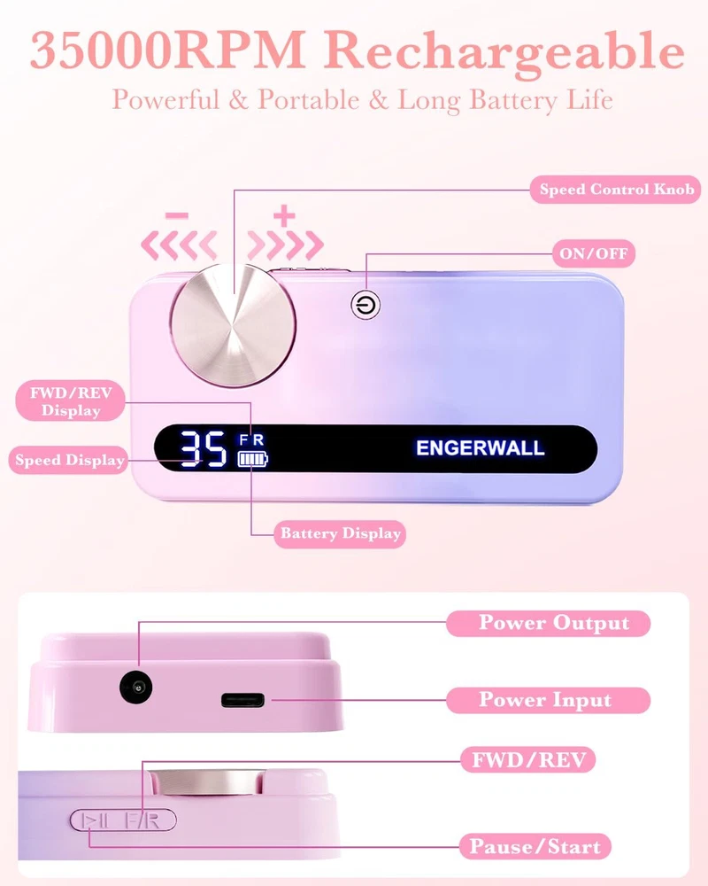 Product Description Rechargeable Nail Drill 35000 Rpm, Portable Cordless Electric Nail File Machine For Acrylic Nails Gel Polishing, Removing, With Nail Drill Bits Kit For Manicure Pedicure, Pink-Blue 【35000 Rpm High-Speed Bearings】: Professional M50 Series Nail Drill Is Equipped With High-Quality Bearings, Which Enables It To Work Smoothly At A High And Adjustable Speed (0-35000 Rpm). It Is An Ideal Nail File For Both Professional Technicians In Salons And Newbies Who Start Their Journey To A Manicure And Pedicure At Home. 【Top Quality Torque】: E-File Comes With Superior Torque To Prevent It From Stopping Occasionally When Applying Appropriate Pressure. Awesome For Nail Buffing, Shaping Various Nails, And Smoothing Calluses Or Hardened Skin On Your Hands And Feet. 【10H Battery Life & Portable & Rechargeable】: Our Cordless Nail Drill Has A Large-Capacity Battery(3000 Mah) For Up To 10 Hours Continuously Working, Fully Charged For About 2.5 Hours. The Portable Size(6.05*2.75*0.95 Inch) And Light Weight Of This Electric Nail File Make It Compact To Pack Into Your Handbag For Carrying Out Anywhere. 【Low Noise & Low Heat & Low Vibration】: The Handle Of This Electric Nail Drill Is Made Of High-Quality Aluminum Alloy. High-Quality Motors And A Unique Ventilation Hole Design Ensure Excellent Heat Dissipation Performance, No Risk Of Overheating, And Durability. Low Heat And Low Vibration Will Not Make Your Hand Numb After A Long Time Of Use. It Works Very Quietly And Smoothly Without Disturbing The People Around You. 【Easy To Handle】: Adjust The Speed From 0 To 35000 Rpm By Turning The Wheel According To Your Need, And Switch The Direction Of Rotation By Pressing The "F/R" Button On The Side, And The Lcd Screen Displays Real-Time "Battery/Speed/Direction". The Lightweight And Ergonomic Design Of The Handle Makes It Easy To Hold. So You Won'T Feel Uncomfortable Even If You Use It For A Long Time. About Us We are a reputable seller with many years of experience selling on eBay. Our goal is to provide high-quality products and excellent customer service. Shipping Items will be shipped within 1-3 business days when we received payment. (Orders are not processed on weekends & holidays) Tracking information will be sent once item is shipped. Delivery time depends on destination and other factors Item is shipped to ebay address. Leaving correct address can minimize delay. For international shipping and shipping to Guam, Hawaii and Alaska, Please contact us before placing the order. International buyers please note: Import duties, taxes and charges are not included in the item price or shipping charges. These charges are buyer’s responsibility. We will try our best to reduce the risk of the custom duties. Local pick-up is unavailable at the moment. Contact Us We reply any email messages within 1 business / working days(off-duty at weekend). If you do not get a response from us, then please check your junk or spam mailbox. Our Business hours: Mon-Fri 9:00-18:00, UTC/GMT +8 hours. Please contact us either by clicking "contact seller" in the "purchase history" section or simply click "ask a question" at the bottom of this page. If you are unsatisfied with our item or service, please contact us before leaving any feedback. We are committed to resolve all issues in a friendly and satisfactory manner.