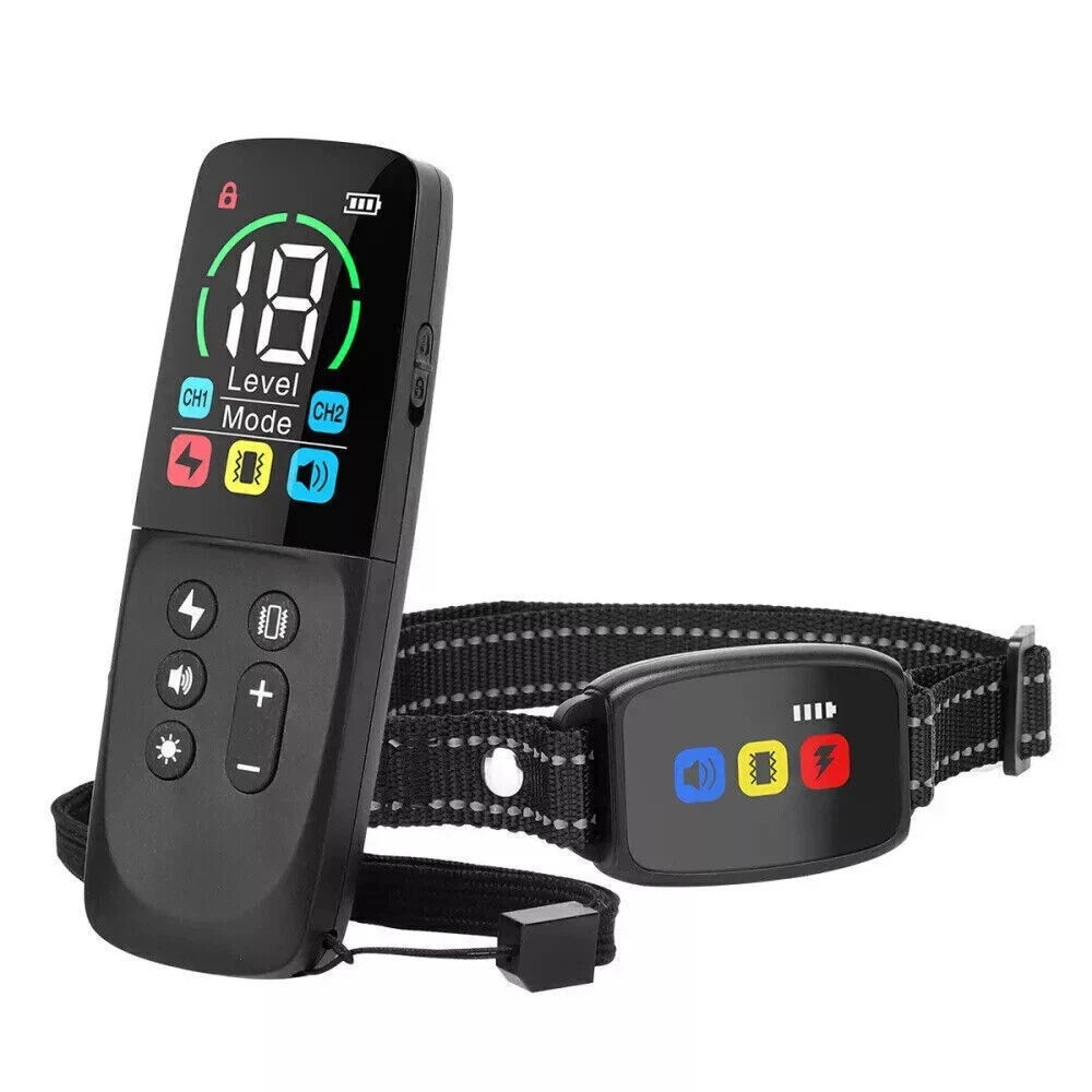 Description Dog training collar with descriptive symbols - improves visual training feedback: Large LCD color screen with clear and vivid display. The same training icons are displayed on both the remote control and the dog training collar. When the remote control sends a training command, the corresponding training icons on the collar will light up, which displays the working status of the electric shock collar more intuitively and improves visual feedback during training. 3 training modes - increasing training effectiveness: YOUKUKE dog training collar with remote control offers 3 training modes: beep (8 different tones), vibration (1-8 levels) and static shock (1-18 levels). The adjustable training levels allow training to be tailored to the differences of each dog. Adjust the level according to the dog's response and behavior to meet their needs and abilities. How to effectively change your dog's bad habits by using dog shock collars. Fast response time - improving the training experience: YOUKUKE dog shock collar with remote uses a smart chip to shorten the response time. When your dog wants to show a positive behavior or make a correction, click the button and the signal will be quickly transmitted to the collar, ensuring that your commands are transmitted accurately and immediately. This allows your furry companion to understand without confusion. It supports 2 channels and can control 2 collar receivers at the same time (only 1 collar receiver is for sale, if you need an additional collar receiver, please contact us to purchase it separately). Fast response time - improving the training experience: YOUKUKE dog shock collar with remote uses a smart chip to shorten the response time. When your dog wants to show a positive behavior or make a correction, click the button and the signal will be quickly transmitted to the collar, ensuring that your commands are transmitted accurately and immediately. This allows your furry companion to understand without confusion. It supports 2 channels and can control 2 collar receivers at the same time (only 1 collar receiver is for sale, if you need an additional collar receiver, please contact us to purchase it separately). Small design - improving wearing comfort: Our dog shock collar is smaller design. Compact collar reduces the burden on the dog's neck, ensuring long-term wearing comfort. The waterproof receiver allows you to use the dog training collar with remote for outdoor training. The band is soft and odorless, dog shocker for large, medium and small dogs, all breeds with neck girth of 15-68 cm and weight of 3.6-54 kg. Please measure the neck girth and adjust the strap before use. Long battery life - extended operating time: The dog training collar extends the battery life. Comes with a charging cable, please use it to charge. Train and enjoy, get the well-behaved puppy you've always dreamed of with YOUKUKE rechargeable dog shock trainer collar. Technical data: Handheld transmitter material: ABS Receiver material: ABS Collar material: nylon Color: Black Functions: Static shock, vibration, beep, flashing dog search icons Remote transmitter battery: Built-in 300 mAh (120 days standby time) Collar receiver battery: Built-in 300 mAh (45 days standby time) Charging port: Type-C USB Charging time: about 2 hours with DC 5V 1A Remote control range: up to 800 m (open area) Frequency: 433 MHz Suitable dog: Large, medium and small dogs (3.6-54 kg) Waterproof: IP67 (E-collar) Handheld remote control size: about 130 x 45 x 20 mm Collar receiver size: about 56 x 40 x 18 mm Certification: CE, FCC, ROHS, MSDS (documentation available) Scope of delivery: 1 x Remote transmitter 1 x Collar receiver 1 x Nylon collar 1 x Lanyard for remote transmitter 4 x Conductive silicone cover (1 pair long + 1 pair short) 1 x USB charging cable (Y-splitter, 1 to 2) 1 x Test lights 1 x User manual (English)