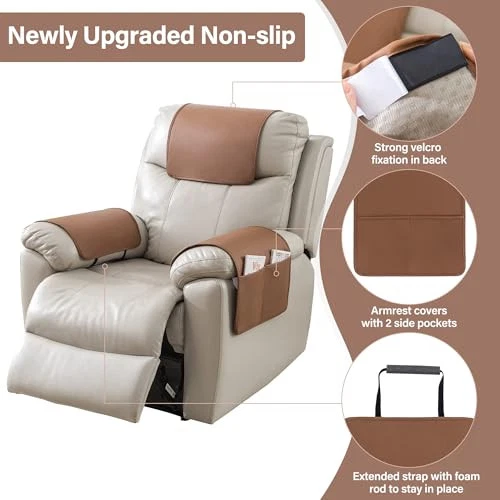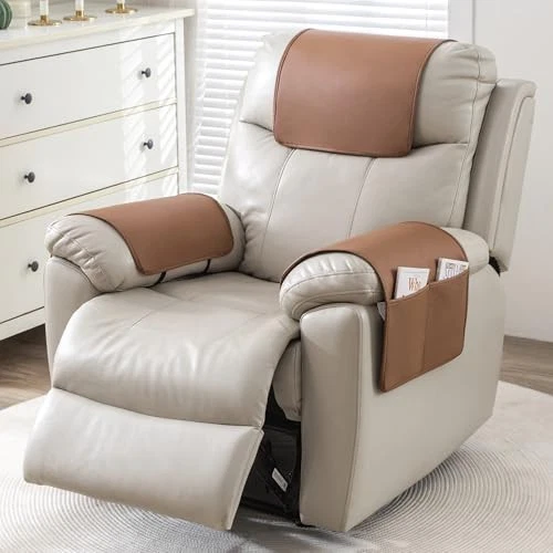 Return Policy Fast Delivery Trusted seller Recliner Headrest Cover for Recliners Non Slip Back Sofa Headrest Covers and Arm Covers Faux Leather Headrest Cover for Furniture Couch Headrest Protector for Living Room,1 Set Product Description 【Recliner Headrest Protector】 Recliner headrest cover and armrest covers are high quality thick artificial leather materials, the headrest covers for recliners are carefully crafted with fine stitching, to keep your furniture like new and protect it against spills and stains. The leather recliner chair cover is waterproof, wear resistant and tear resistant which can be applied for a long time, so it's perfect for the home! 【Stay in Place Design】In order to be less slide, non-slip latex particles are used on both the back of the covers. In addition the chair headrest cover comes with adhesive tape, which is designed to leave no traces and no damage when removing the cover. On both sides of the armrest covers are added straps with foam rods that can be tucked into the gap between the armrests and seat cushions to increase stability. 【Utility Pockets on Both Sides】T are two pockets on either side of the recliner covers to accommodate your needs. The large pocket on one side can conveniently store your magazines, etc. Please confirm before purchase. (Due to lighting, the color shown in each picture will be different, please take the actual color as the standard.) 【Wide Range of Application】 Recliner chair covers with arms are available in 4 options:1 SET( 1PC headrest + 2PC arm) OR 1PC/2PC/3PC headrest cover. chair head covers are suitable for many places including recliners, double chairs, sofas, loveseats and more. Serving you in various ways. 【Easy to install & Easy care】Follow the Instructions in the display picture, you will have no problems installing. Just takes 1 minutes the covers will give your chair a new look! Best choice of both leather and fabric. Care instruction: If t is stains on the headrest cover, you can use a brush and soapy water to clean it. No machine wash. No microwave. (Service Guarantee: If have any questions about the product, please contact us for help.) Shipping Returns Payment Shipping Shipping is FREE to all addresses other than APO/PO boxes in the lower 48 states. All our stock ships from US-based warehouses. Shipped via USPS or UPS (depending on location and package weight) Unless stated otherwise, all orders will ship within 24-72 hours of your payment being processed. Check our feedback to see the great reviews of FAST shipping we offer. Returns Seller does not accept returns Payment We currently accept payment via eBay managed payments only. Once payment is cleared, we will dispatch your shipment within 1-3 business days. Please refer to the "Shipping" tab for more information regarding shipping speed to your destination.
