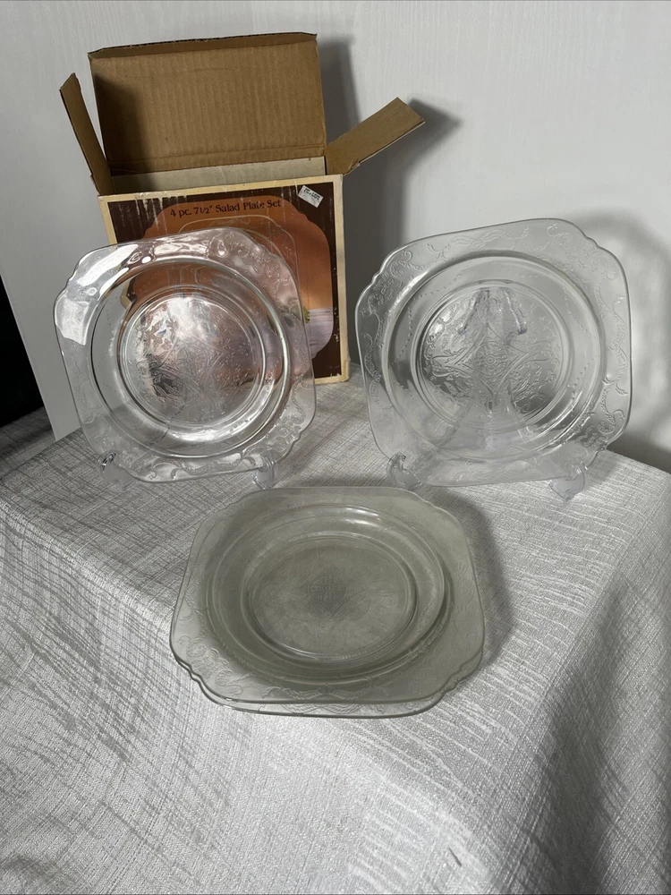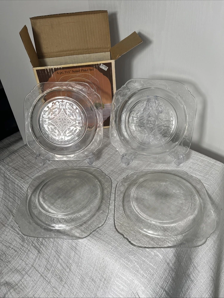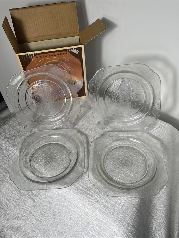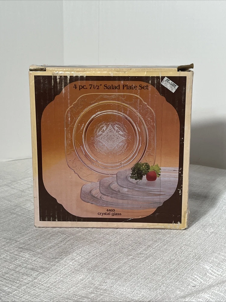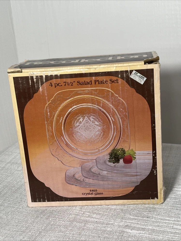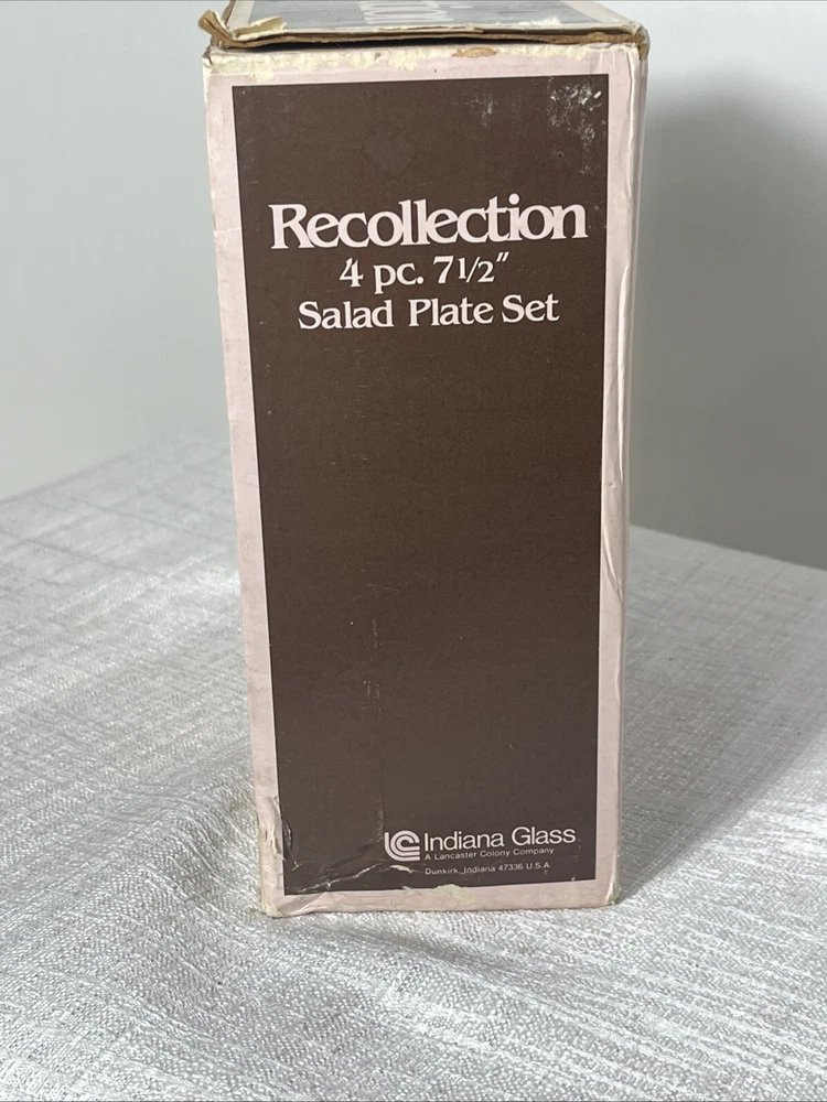 Elevate your dining experience with the Recollection Indiana Glass 4493 4 Pc. Set of Salad Plates. Crafted from high-quality crystal, these plates showcase a sleek, square shape that brings a touch of modern elegance to any table setting. The clear construction allows for versatility in usage, complementing any occasion or decor. Preowned. Stored in box. Vintage original purchase label visible on box. Set of 4 salad plates. Excellent condition. ShippingUSPS ground advantage. Shopwith confidence***Returns accepted within 30 days! Returned items must bereturned in original condition received, buyer pays return shipping cost. Takea peek at SweetShine's other listings. Thanks for viewing.