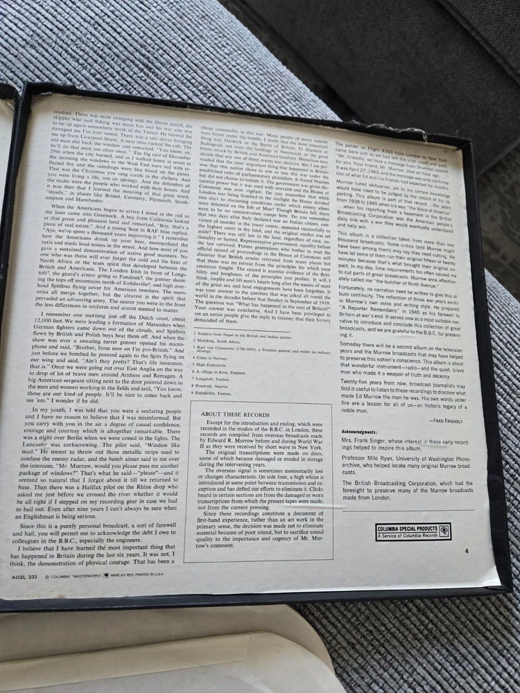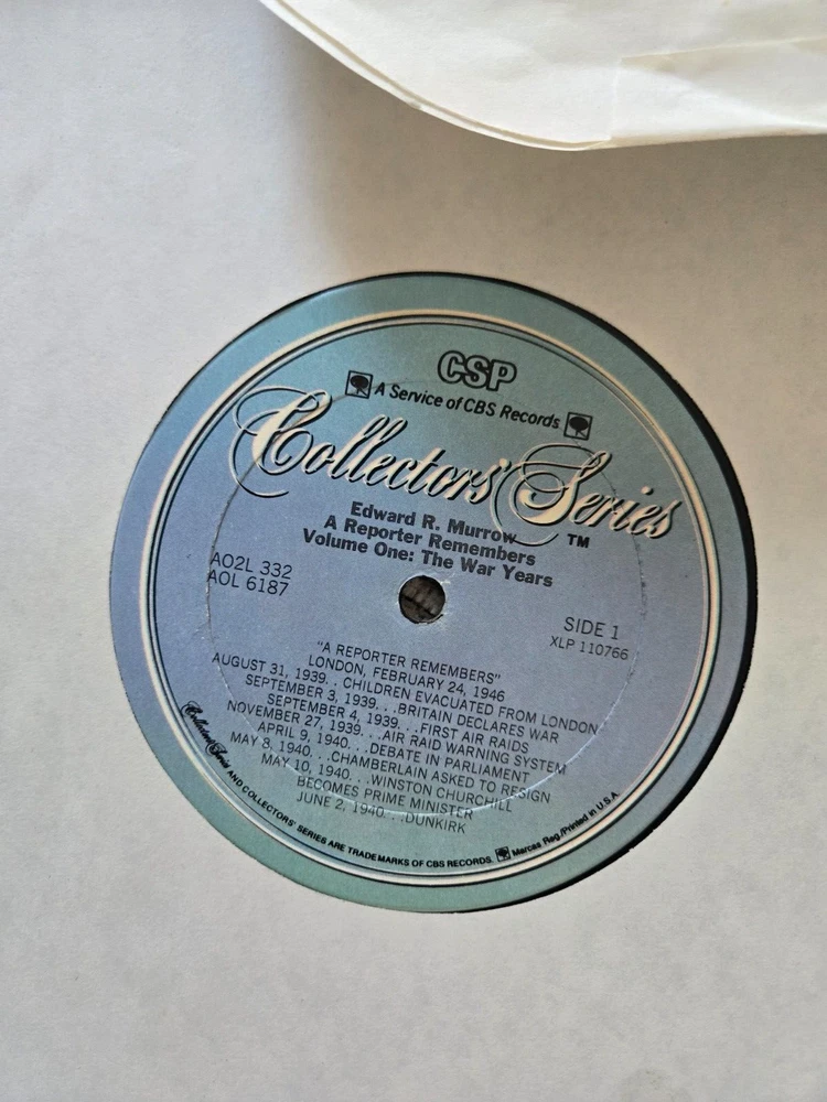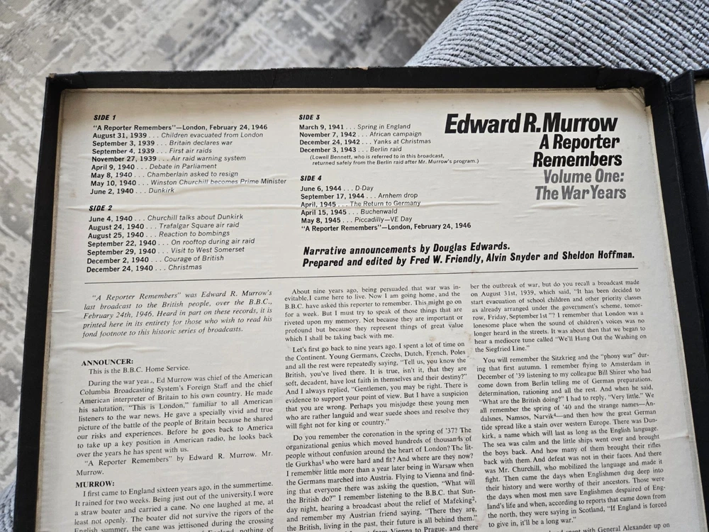 Record Album. Edward R Murrow A Reporter Remembers. Volume 1 The War Years