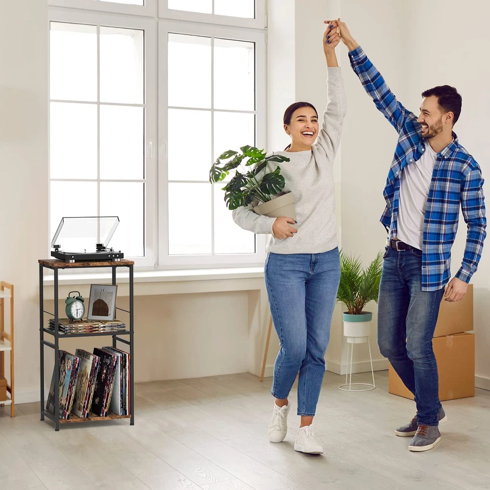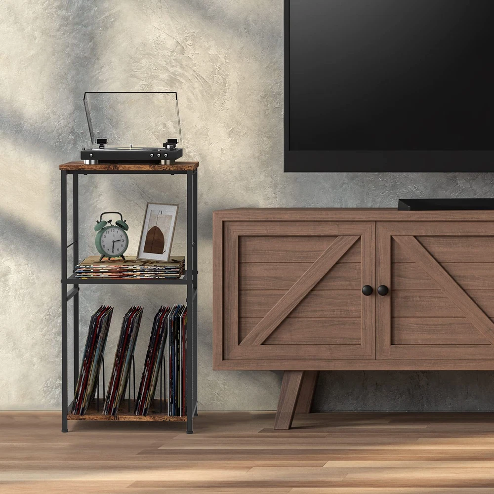 CADUKE Record Player Stand with Record Storage Turntable Stand Vinyl Record Stand 3 Tier Vintage Record Player Table Brown Vinyl Record Display Stand with Wooden for Living Room Office VINTAGE RECORD DISPLAY STAND: Display your favorite vinyl records about 150 and turntables in style with this record player stand with vinyl storage, but also to store your desk lamps, alarm clocks, photos, plants, books, TV remotes, stereos, decorations, etc., vinyl record storage holder providing you Ample storage space. WIDE RANGE OF APPLICATIONS: Keep your record player safe and organized with this turntable stand with record storage. Dimensions: 15.7” L x 11.8” W x 31.6” H, suitable for most turntables. It can also be used as a coffee table, sofa side table, bedside table, etc. It will become an indispensable turntable stand at home. FANTASTIC SOUVENIR: The sturdy and elegant vintage vinyl record stand. Lets your turntable and records be displayed and easily selected. The ultimate accessory for any vinyl enthusiast, and the perfect souvenir for family and friends on birthdays or holidays. HIGH-QUALITY MATERIAL: The brown record player table is made of premium MDF wood board and a metal frame in brown. Solid and good-looking, and the surface is smooth. Record player cabinet equipped with an adjustable feet pad that can be adjusted freely to maintain stability and protect your floor. Stylish and sturdy vinyl record stand for organizing your growing collection. ENJOY LEISURE TIME: Enjoy your music with the perfect open record display stand and elevate your listening experience. Let you enjoy joyful leisure time with your family and friends. SHIPPING - We offer FREE shipping on all orders! - We ship within 3 business days of payment, usually sooner - We use a selection of shipping services such as UPS, FedEx, USPS etc - We only ship to the lower 48 states, no APO/FPO addresses or PO Boxes allowed International buyers – please note: Import duties, taxes, and charges aren't included in the item price or postage cost. These charges are the buyer's responsibility. - Please check with your country's customs office to determine what these additional costs will be prior to bidding or buying. - We have confidence in our products, but if you are not fully satisfied please contact us within 30 days of purchase and you will get full refund. * Order Cancellation Policy ** You can return a product for up to 30 days from the date you purchased it. 1. The seller reserves the right to cancel the special case only due to eBay cancellation fee. 2. The decision of seller is the final. 3. The seller will respond to the cancellation request within 2 business days. Please wait for the result of cancellation. 4. In case the cancellation is not completed by some reasons, the buyer can follow the options below to get the refund. 4.1 The buyer can reject the item when it arrives. 4.2 The buyer can send the item back to the seller within 30 days If the buyer receives item (USA Shipment ONLY). The seller will provide the FREE return label to the buyer when the buyer opens " Return Item" case on eBay by using the reason as "Change my mind" ONLY. 5. When buyer has placed the order. The order will be processed and completed by automatic warehouse system within 5 minutes. In case that buyer sends the cancellation request after 5 minutes of placing the order, the request will be rejected. **Sending direct message to cancel the order is not allowed for every case.* Return Policy For the return case - If buyer would like to return the items for refund or replacement, please CONTACT SELLER to receive the free return label from seller. The refund or replacement will be processed with the tracking number of return label which is provided by seller only. The other ways of return which are not approved by seller will not be processed for the refund or replacement. CUSTOMER SERVICE - We try our best to make sure every customer is completely satisfied. - If there's a problem, feel free to message us! - We're happy to help.