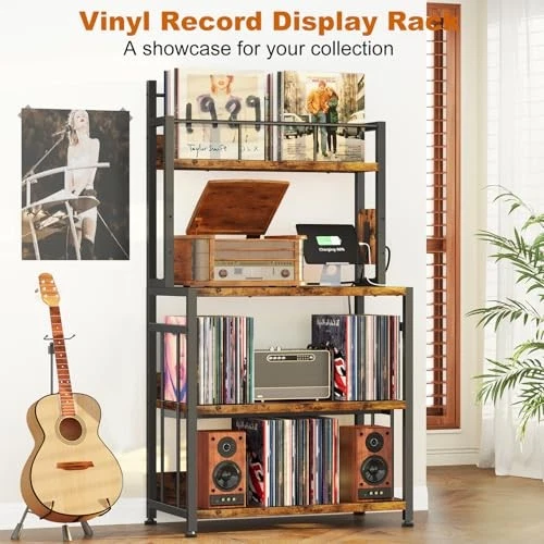 Menu 1. We require immediate payment. 2. We currently accept payment via eBay managed payments only. 3. Once payment is cleared, we will dispatch your shipment within 1-3 business days. Please refer to the "Shipping" tab for more information regarding shipping speed to your destination. Record Player Stand with Vinyl Storage, Turntable Stand Holds Up to 300 Albums, Large Record Player Table with Charge Station, Vinyl Record Stand for Living Room Product description Large Size & Large Capacity: Specifically enlarged, the tabletop(Dimensions:14.17"D x 25.51''W)of our record player stand can accommodate nearly any size of record players. You can enjoy your music without worrying about your turntable sliding off. Featuring three spacious shelves, our record player table can hold up to 300 vinyl records, while the two lower tiers can store audio equipment or other media essentials, providing a home for your treasures 4-Tier Vertical Design: Our vinyl record stand features a vertical structure with four tiers, the top tier serves as the vinyl record storage area, allowing you to organize and store your frequently listened to vinyl records as you prefer. The record player shelf is positioned 31 inches high off the ground, eliminating the need to bend down when playing your music and ensuring your comfortable listening experience Multi-function: With two built-in charging sockets and a 6.56-feet power cord, the turntable stand facilitates the process of powering up your record player. Ample space at the bottom for your audio equipment, magazines, books, etc. Four dividers enable you to organize your records efficiently. We have integrated some detailed designs into our vinyl record player stand to ensure they meet your specific needs Steady and Stable: Constructed with a sturdy metal frame and high-quality wooden board, this record stand can hold up to 90 lbs per shelf. The iron pipes on the sides add stability and prevent deformation. Adjustable feet remove your concern that the record player cabinet may not be stable on uneven surfaces Easy Assembly: We have labeled all the components of the record player stand with vinyl storage and prepared very detailed installation instruction for you to ensure that you can assemble the vinyl record table in less than 10 minutes. pays attention to details and is dedicated to enhancing your shopping experience PLEASE MESSAGE US IF YOU HAVE ANY OTHER QUESTIONS, AND MANY THANKS FOR READING ALL OF THIS. Copyright ©#. All Rights Reserved.