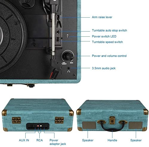 Return Policy Fast Delivery Trusted seller Record Player Vintage 3-Speed Bluetooth Vinyl Turntable with Stereo Speaker, Belt Driven Suitcase Vinyl Record Player Product Description 【All-in-one Record Player】Easily connect external speakers via the stereo RCA outputs,Bluetooth Input & AUX Audio input &Headphone jack. Built in stereo speakers,with Bluetooth wireless technology,elegantly listen to the music from your smart phone.Use Aux cable input to directly play the music. Or enjoy your time with headphone. For better or louder sound, connect external speaker via RCA cable. 【Vinyl Turntable Record Player】Easy to use, simple setup and operation. Great ideal for vinyl lovers. Three-speed Turntable (33, 45, 78 RPM) plays all of your 7" 10" 12" vinyl records.With the power/volume knob and the automatic stop switch, the switch stops rotating records after the record is completed. 【Record Players for Vinyl with Speakers】Record Player Bluetooth with Speakers,Built-in Bluetooth receiver & 2 stereo speakers,you can listen to your favorite music from your Bluetooth compatible device like smartphone with ease. Just Bluetooth in connect and play! 【Retro Suitcase Record Player】vintage suitcase with an easy carry handle,Fashionable suitcase design, you can shut the case and keep the dust out or just snap closed the latch and pick it up like a mini suitcase and take it to someplace else. This turntable with Bluetooth has a beautiful textured exterior are a perfect fit for any environment. 【Portable Record Player】It creates a warm atmosp when family gatherings. When you are alone, it can help you relax. Even if you don't use it, it can be one of the home's premium decorations. As a gift, it also allows the recipient to feel your heart. Shipping Returns Payment Shipping Shipping is FREE to all addresses other than APO/PO boxes in the lower 48 states. All our stock ships from US-based warehouses. Shipped via USPS or UPS (depending on location and package weight) Unless stated otherwise, all orders will ship within 24-72 hours of your payment being processed. Check our feedback to see the great reviews of FAST shipping we offer. Returns Seller does not accept returns Payment We currently accept payment via eBay managed payments only. Once payment is cleared, we will dispatch your shipment within 1-3 business days. Please refer to the "Shipping" tab for more information regarding shipping speed to your destination.
