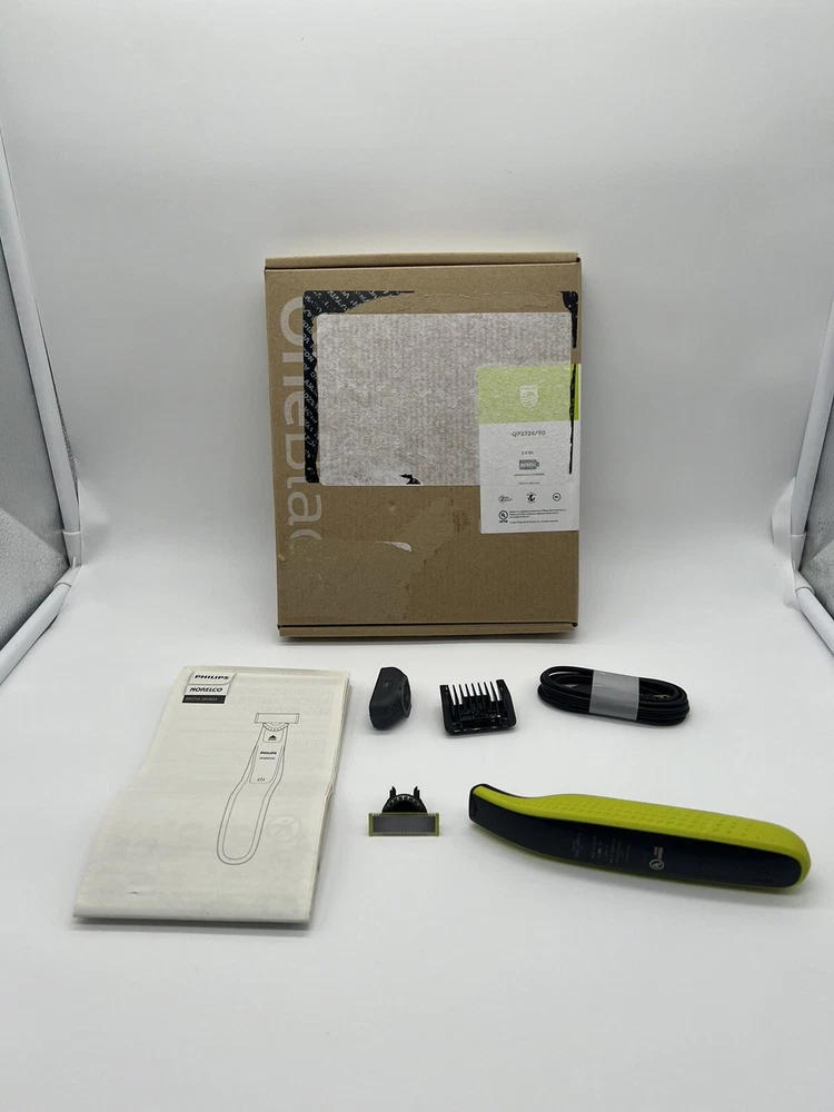 Philips Norelco OneBlade 360 Face Hybrid Electric Beard Trimmer QP2724/90 (S1(11) It’s brand new, open box. OneBlade Technology: the fast-moving cutter (12,000x min) is efficient, even on longer hairs; the dual Protection System with glide coating plus rounded tips makes shaving easier and more comfortable Innovative 360 Blade: it can flex in all directions to enable constant skin contact and control; easily trim and shave, even the most difficult-to-reach areas with fewer passes and greater comfort¹ Designed to cut hair not skin: trim your beard to an even stubble length with the 5in1 comb (1-5mm), create precise edges thanks to the dual-sided blade, and shave off any length of hair easily Easy grooming anywhere: take it in the shower and use wet or dry; 45-minute battery with USB charging and compact handle make it the perfect travel companion The set includes: 1x Philips Norelco OneBlade 360, 1x 360 Blade, 1x 5in1 adjustable comb (1-5mm), 1x protection cap, 1x USB-A charging cable, a user manual (power adapter not included)