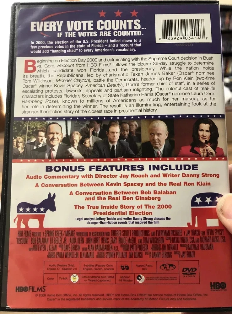 Format: DVD gtin13: 883929034147 Language: English Video Format: DVD Movie/TV Title: Recount UPC: 883929034147 Studio: HBO Films