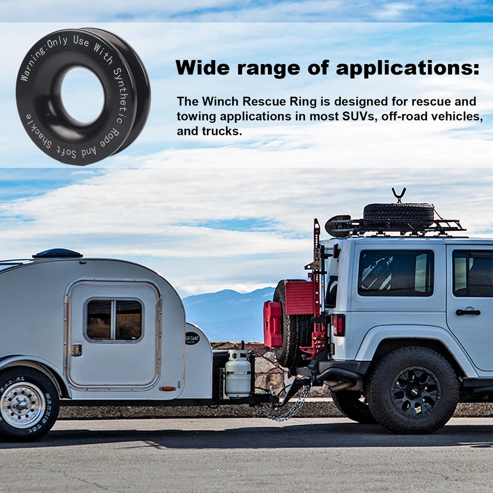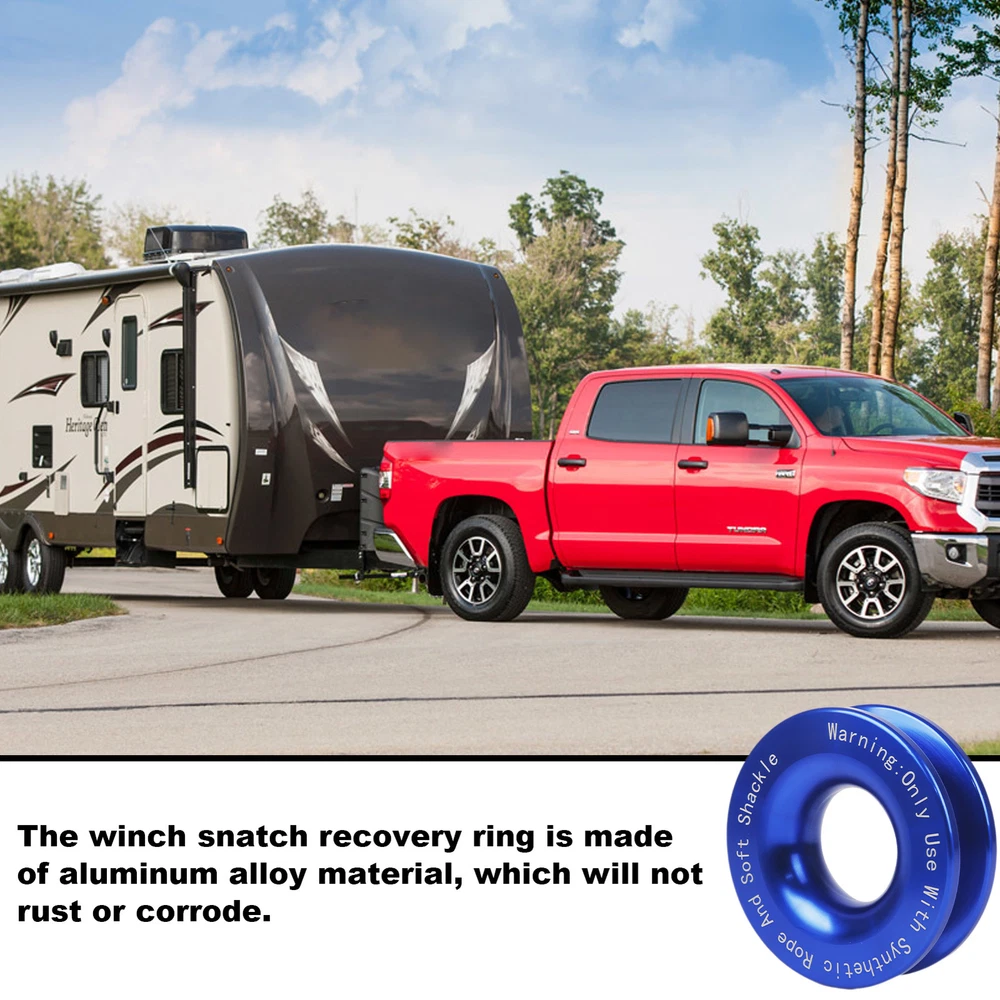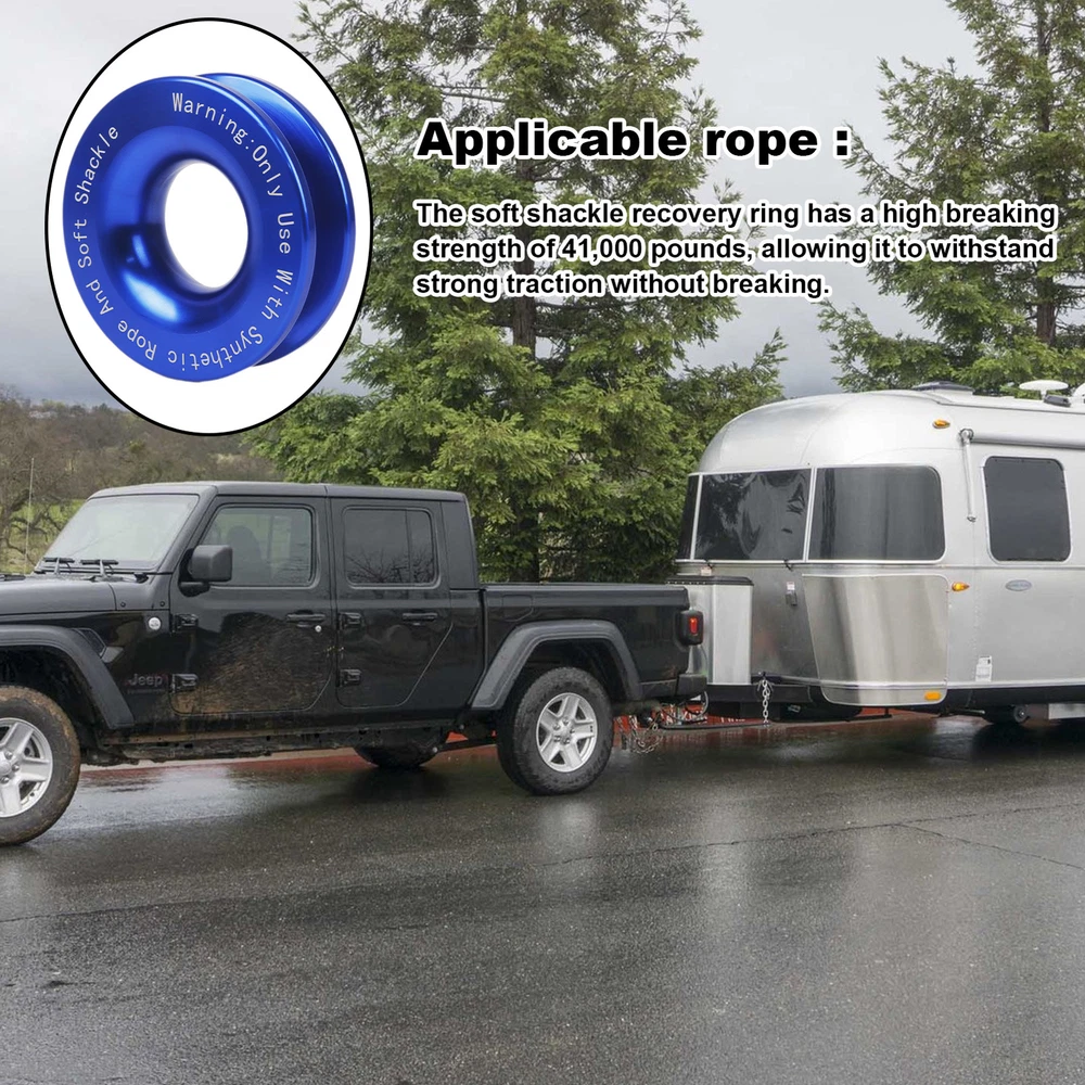 Recovery Ring Snatch-Ring Block-Snatch Pulley/Soft Shackle-Rope Tow Winch Stra- Reliable Recovery Assistance: Improve your winching game with our soft shackle recovery, designed to provide outstanding durability without sacrificing strength. With a high breaking strength of 41,000 pounds, it's the perfect tool for 3/8-inch or 1/2-inch winch ropes, capable of handling strong pulling forces with ease. Durability Assured: Constructed with excellent aluminum alloy material, our Soft Shackle Recovery boasts a sturdy structure that can withstand heavy loads. It is built to endure and won't rust, corrode, fade, or break easily, ensuring maximum durability and reliability. Improved Efficiency & Protection: Boost safety and speed with our Soft Shackle Recovery, a superb alternative to traditional snap blocks. Minimize the risk of damage to cables and handling while using it in combination with snatch rings for faster and more reliable recovery. Wide Application Range: Equipped with durable winch recovery rings, this soft shackle is a must-have for heavy-duty rescue and towing applications in mining, agriculture, and other industries. Fits most SUVs and trucks with ease. Made to Your Needs: Improve your recovery kit with our Soft Shackle Recovery. Crafted with precision for excellent durability. Select from three vibrant colors. Our Recovery Ring is the ideal solution for your winching needs. Suitable for 3/8-inch or 1/2-inch winch rope, this ring is designed not to rust or corrode, providing you with durability and long-lasting use. You'll enjoy safer and faster winching experiences, making it perfect for use in mining and other fields. Available in three colors, our Recovery Ring is a must-have for all winching enthusiasts. Specification: Name: Recovery Ring Material: Aluminum alloy Color: Black, Red, Blue Product Gross Weight: about 350g Applicable Models: All Packing List: 1* Recovery Ring 1* Rope Buckle Notes: 1. Due to the different monitor and light effects, the actual color of the item might be slightly different from the color which is showed in the pictures. 2. Please forgive a slight measuring deviation due to manual measurement. 1.You can make a Credit payment via Paypal.Paypal will let you use MasterCard,Visa to pay. 2.Payment should be completed within 5 days after auction closed, or unpaid dispute will be filed for an closing auction.An unpaid case will be filled after 4 days. ● We strive for 100% customer satisfaction ! ● Positive Feedback is very important to us. ● We hope that you contact us immediately BEFORE you give us neutral or negative feedback, so that we can satisfactorily address your concerns. ● We promise to offer the lowest price and high quality produce. Dear buyers : ● Welcome to my store ! ● Your satisfaction is our top goal,we appreciate your patronizing. ● If you have any questions, please contact us before leave negative or neutral feedback, we will try our best to solve the issue to your satisfaction, thanks ! ● If you are satisfied with our service, please rate the details of the transaction (Detailed Seller Ratings) on eBay. ● Please always talk to us via ebay Message. ● We appreciate your business and look forward to growing our e-Bay sales with satisfied customers.