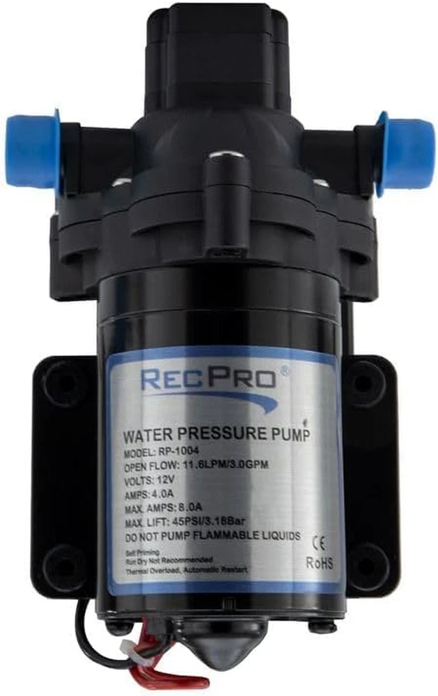 Store New Arrivals Add to Favorite View Feedback Contact Recpro RV Water Pump Direct Replacement for Shurflo 4008-101-A65 3.0 GPM | 12V Water Pump | Self-Prime | Camper Water Pump | RV Plumbing Description Item model number 10 Part Number 4008-101-A65 Batteries Required? No Maximum Lifting Height 9 Feet Power Source Battery Powered Item Package Quantity 10 Color Silver Product Dimensions 4.9"L x 4.3"W x 8.1"H Material Polypropylene Item Weight 4.54 g Maximum Flow Rate 3 Gallons Per Minute Batteries Included? No Voltage 12 Volts (DC) Manufacturer RecPro Size 1 Pump Created with a unique one-piece diaphragm and internal by-pass, this pump is durable and reliable for all plumbing systems. Designed as the next legendary pump to exceed the expectations of our customers, the Revolution Pump is constructed for high flow demand, low noise, and no rapid cycling. The 4008 Revolution fresh water automatic demand pump is super quiet, thermally protected, and can run dry without damage. With this quality assurance, you can relax in your RV without needing to worry about your water pump. With the built-in check valve, backflow is prevented so that you can make sure you’re getting all of the water you want to the fixture you’re using. While the pump runs at about 55 PSI, the pressure at which the pump will shut off is 45 PSI. Please Note: E65 and A65 is the Same Pump. Pump Listed Does NOT Come in Retail Package Product Description Technical Data: Voltage: 12V DC GPM/LPM: 3.0/11.6 PSI/BAR: 45/3.1 Amps: 4.0 Max draw: 8.0 Amp Max Lift: 45 PSI/3.18 Bar RecPro 12V Electric 3 Chamber RV Water Pump The RecPro 12V Electric 3 Chamber RV Water Pump is the perfect solution for all of your RV water needs! This pump features corrosion-resistant valves, which keep it running smoothly and quietly, perfect for camping in a packed campground. With its self-priming feature, you can rest assured that the pump will keep up and running without requiring extra steps or care from you. Pick up this 12V RV Water Pump for a reliable and quiet water pump perfect for any camping trip! Dimensions: 8"L x 5 1/4"W x 4 3/4"H Corrosion-resistant valves Quiet running Smooth operation Self-priming up to 9.0ft vertical Runs dry without damage Lower power draw Easy connecting system ABOUT US We offer the best prices around on high quality products. Our E-store includes media such as books, movies, music and games while offering electronics, toys, sporting apparel, clothing, tools, general home, garden items and more. SHIPPING We are always working hard to ensure your package arrives as soon as possible. Please understand that some factors like weather, high postal traffic, and the performance of shipping companies are outside of our control. For shipping outside of the continental USA, we only use eBay's Global Shipping Program.The item is shipped to KY and then sent to the rest of the world. International customers are responsible for all duties and taxes. Continue to check out in order to calculate costs for shipping the item to your country. Messages regarding eBay's Global Shipping Program MUST be directed at eBay EXCLUSIVELY. RETURNS We offer a 30-Day Return Policy on items which you are not completely satisfied with. You have the option for a full-refund or an exchange of the item. No returns are available on items shipped outside of the USA. PAYMENT We accept PayPal. CONTACT US This page content is yet to come Please ad us to your favorite seller and visit again later Thank You CUSTOMER SATISFACTION We try our very best to make sure every customer is completely satisfied. If there's a problem, message us! We're happy to help. WE ACCEPT Copyright © 2021 AutoDS. | All Rights Reserved