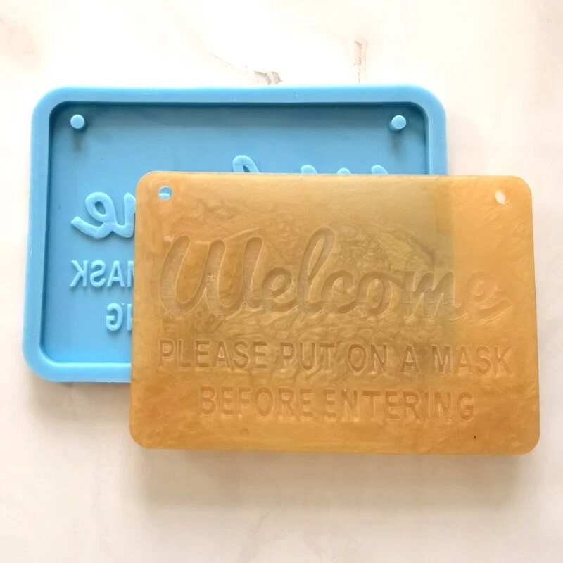 Rectangle Doorplate Resin Mold for DIY Door Wall Hanging Plates, Welcome Sign Handmade Welcome-Door Plate Resin Mold Silicone Letter Sign Please Wear a Before Entering Resin Mold Craft Tools Feature: If you are fond of DIY this silicone mold may be great for you. You can make your own door plate with this mold. silicone,it will greatly make products. Non-stick,easy to separate, eco-friendly,low carbon, can be recycled Simple and useful, Healthfulness,natural antibackerial, High strength softness,corrosion and Adaptability Specification: Silicone Color:Blue Size More detailed,please see phoyo Quantity:1 Pc. Notes: Due to the light and screen setting difference, the item's color may be slightly different from the pictures. Please allow slight dimension difference due to different manual measurement. Package Included: 1x Silicone Mold.