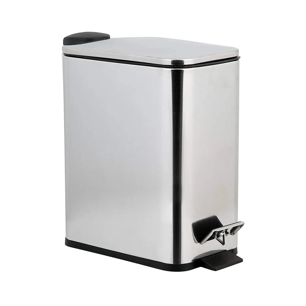 Rectangular 5 Liter Garbage Soft Close Lid in Stainless Steel Slim Step Pedal...