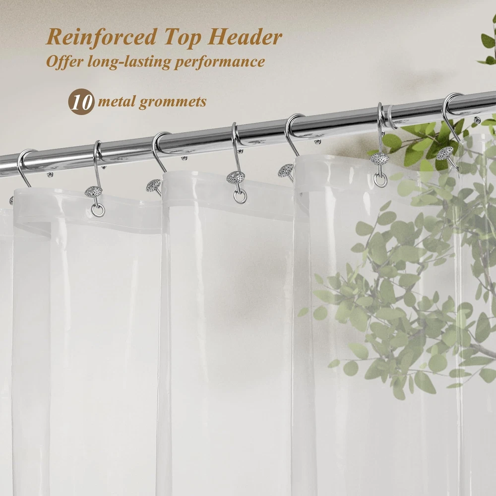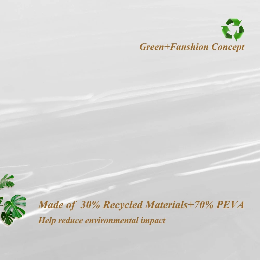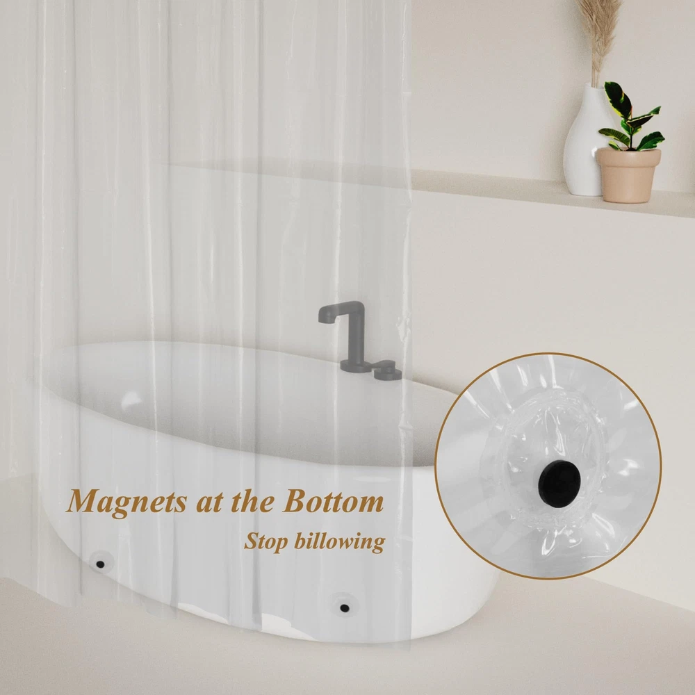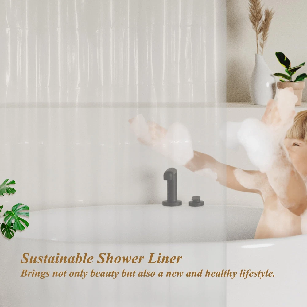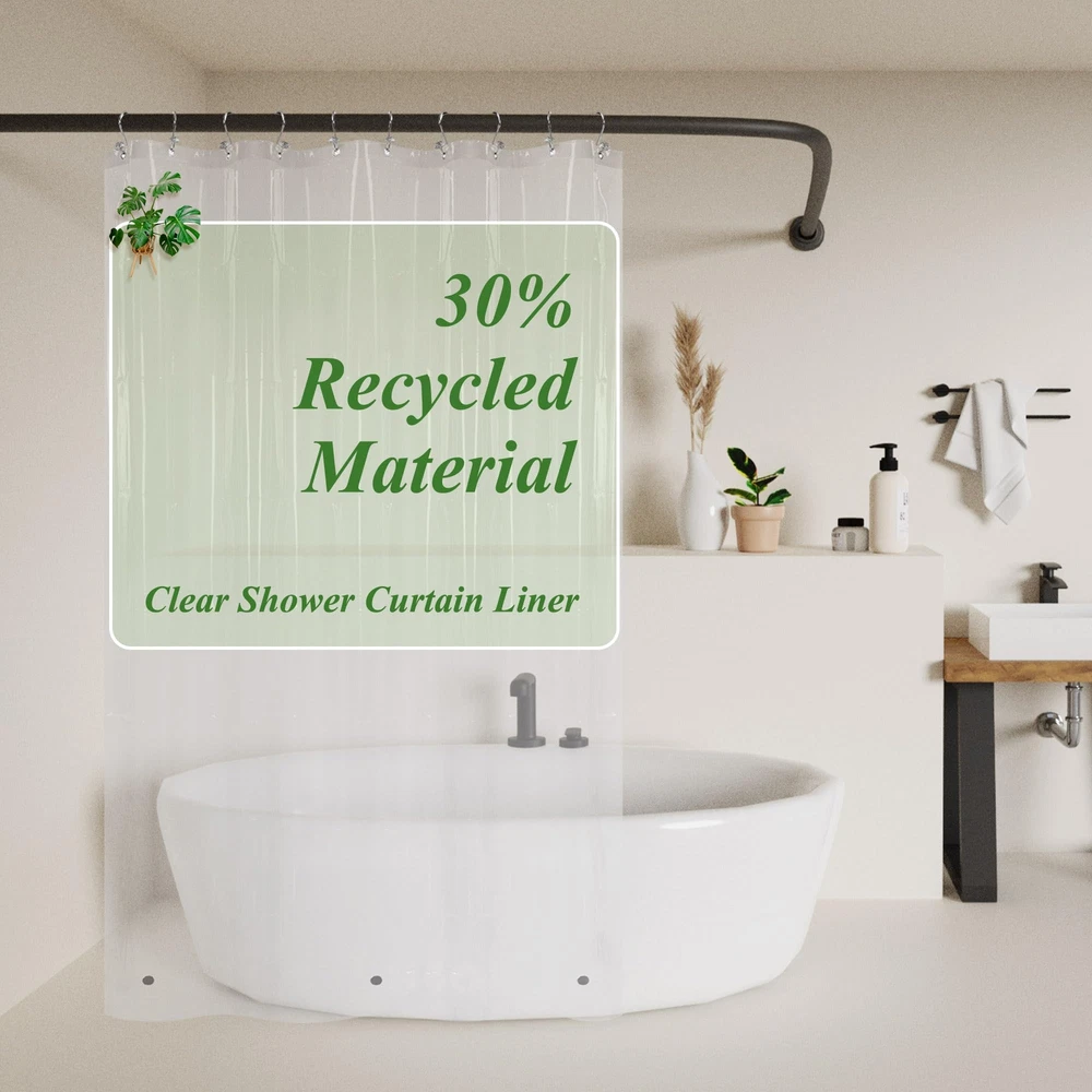 NEW ARRIVALS! PRODUCTS EMBELLISH YOUR LIFE. Material: 30% Recycle material+70% PEVA Size: 60"x 72" (WxL) Color: Clear Optional sizes: 36"x72"/48"x72"/54"x72"/54"x78"/72"x72"/72"x78"/72"x84"/72"x96" Features: *10 Rustproof Grommets *Water Proof *Bottom Weights *Wipe and clean with a damp cloth *Recycled Material: Made of 30% recycled material and 70% PEVA, this shower curtain liner combines classic and functionality with a fashion concept, showing a healthy lifestyle *Good Merits: The same as traditional PEVA liners, recycled shower curtain liners also possesses the merit of no smell, much safer to keep your bathroom clean and fresh *Waterproof: The recycled plastic shower curtain liner is competely waterproof , allowing the water droplets to slide off easily *Durable Use: Come with 10 rustproof grommets along the reinforced top header, and 3 weighted magnets at the bottom to stop from billowing or clinging to your body while showering *Narrow Size: 60" width x 72" height special size for bathroom and shower stall