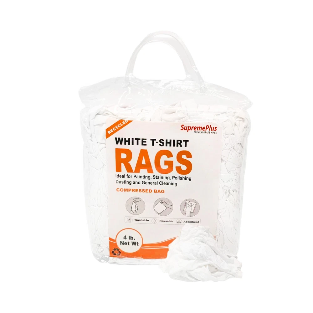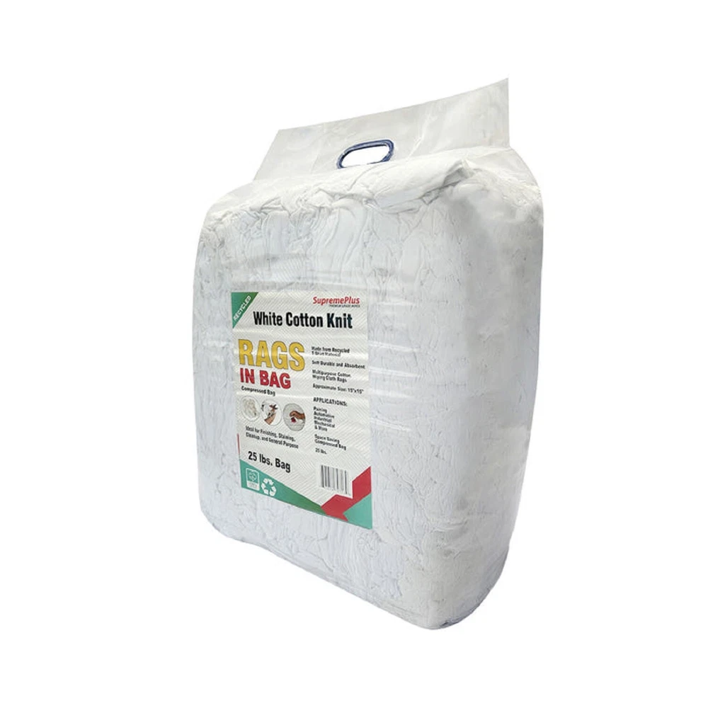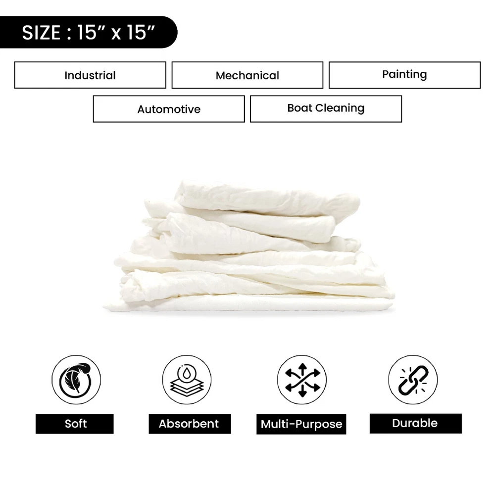 Product Description Recycled White Knit T-Shirt Cotton Cleaning Rags - Multipurpose Cleaning Cloths If you're looking for reliable cleaning cloths : Our premium white knit cotton rags are perfect for household and workplace use. These versatile cloths can handle a range of tasks, from cleaning spills to maintaining cars and kitchen countertops. Low-Lint Finish for Residue-Free Surfaces: Crafted from a high-quality knit material, our rags are designed to be gentle on surfaces while also being highly absorbent. With a low-lint finish, they won't leave any residue behind Eco-Friendly Choice for Environmentally Responsible Cleaning: In addition to their effectiveness, our new white knit cleaning cloths are also eco-friendly. Made from 100% cotton blend leftover materials, they're the perfect choice for those who prioritize environmental responsibility Perfect for Industrial Factories and Workshops : These multi-purpose white knit rags are ideal for use in workshops, as they're up to the challenge of tackling tough grease, oil, and dirt. They'll help keep your workstation clean and efficient. Polished and neat Finished: This pure white color ensures that you won't have to worry about any color bleeding or staining. Choose our white cotton rags for a polished, neat finish every time. In a world where cleanliness was a top priority, a remarkable innovation was born: the extraordinary white knit rag. These weren't your ordinary cleaning cloths; they were something truly special. Crafted from a unique blend of 100% cotton, they boasted exceptional softness and an unparalleled ability to soak up messes, making them the unsung heroes of the cleanliness realm. Approximately cut 18 by 18 inches, these versatile rags were always prepared to tackle any mess, no matter how challenging. They possessed a near-magical quality, effortlessly handling even the messiest situations by absorbing liquids with ease and leaving surfaces impeccably clean and dry. With these remarkable rags in hand, the burden of cleaning was transformed from a dreaded task into an enjoyable breeze. These multi-purpose white knit rags were more than just cleaning cloths. They were symbols of excellence in keeping things clean. They were soft, great at soaking up messes, and made everything look shiny and bright. But there was something more to them. They were also good for the environment. They were made from new materials, which was a way of being kind to the Earth. These rags didn't just clean well; they helped reduce the impact we have on our planet For pallets, please ensure you have a loading dock and a lift gate at your facility to ensure safe and efficient pallet handling Industrial Usage: Industrial cleaning rags find widespread utility across sectors, from manufacturing floors, general shops, factory, machinery wipes to automotive workshops, effectively tackling grime and grease for a pristine workspace. Their versatility and cost-effectiveness make them an indispensable tool for maintaining high cleanliness standards in diverse industrial environments. Soft and Smooth Welcome to the world of Soft and Smooth – where comfort becomes an art form. Embrace a tactile sensation that transcends mere touch. Our collection is a symphony of luxurious textures, each piece crafted with meticulous dedication to bringing you a tactile experience that redefines relaxation. Elevate your senses with Soft and Smooth – because every moment deserves a soft touch. Machine Washable and Dryable Cleaning has never been easier. When you finish cleaning up the mess, just put these rags in the washing machine. They're made to handle lots of washes and still stay in great shape. they're super-efficient and really tough. Say goodbye to the hassle of cleaning and save your precious time with our machine-washable and Dryable Cleaning Rags. Highly Absorbent Meet our Highly Absorbent Cleaning Rags – they're like your special tool for handling spills and messes. These rags are amazing at soaking up liquids and making things super clean. Whether it's a small everyday spill or a surprise mess, these rags will make cleaning much easier. Upgrade your cleaning game with rags that are better than the rest – they're highly absorbent, and messes don't stand a chance. Shop Towel - Red Color Fleece 25 lbs. Box White Knit 10 lbs. Bag Color Terry Towel 5 lbs. Color Knit 600 lbs. Pallet Cotton Fabric ✔ ✔ ✔ ✔ ✔ High Absorbency ✔ ✔ ✔ ✔ ✔ Washable ✔ ✔ ✔ ✔ ✔ Ultra Soft ✔ ✔ ✔ ✔ ✔ Premium Quality ✔ ✔ ✔ ✔ ✔ Color Multi-Colored Multi-Colored Multi-Colored Multi-Colored Multi-Colored Size Per Piece 18 x 18 inches 18 x 18 inches 18 x 18 inches 18 x 18 inches 18 x 18 inches Premium White Knit T-Shirt 100% Cotton Cleaning Rags - MultiPurpose - NEW Product Description White Knit T-Shirt 100% Cotton Cleaning Rags - MultiPurpose Cleaning If you're looking for reliable cleaning cloths : Our premium white knit cotton rags are perfect for household and workplace use. These versatile cloths can handle a range of tasks, from cleaning spills to maintaining cars and kitchen countertops. Low-Lint Finish for Residue-Free Surfaces: Crafted from a high-quality knit material, our rags are designed to be gentle on surfaces while also being highly absorbent. With a low-lint finish, they won't leave any residue behind Eco-Friendly Choice for Environmentally Responsible Cleaning: In addition to their effectiveness, our new white knit cleaning cloths are also eco-friendly. Made from 100% cotton blend leftover materials, they're the perfect choice for those who prioritize environmental responsibility Perfect for Industrial Factories and Workshops : These multi-purpose white knit rags are ideal for use in workshops, as they're up to the challenge of tackling tough grease, oil, and dirt. They'll help keep your workstation clean and efficient. Polished and neat Finished: This pure white color ensures that you won't have to worry about any color blee