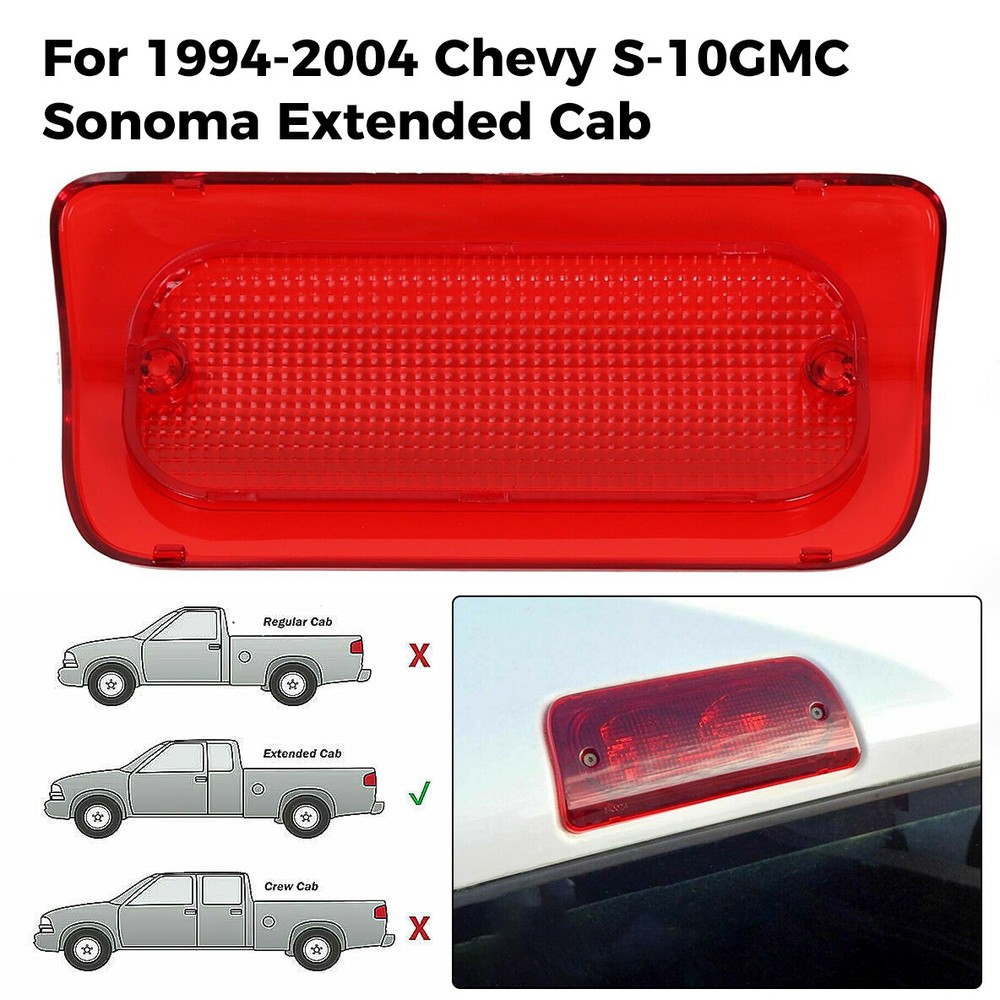 Store Categories Store Categories For Ford For Chevrolet For Dodge For Toyota For Honda Other Details Red 3rd Third Brake Light Lens For Sonoma S-10 1994-2004 Extended Cab #16520288 PRODUCT SPECIFICS Type: Brake Light Lens Lens Color: Red Housing Color: Red Placement on Vehicle: Rear Material: Red Premium Automotive Grade Plastic Direct replacement for #16520288 Size/Dimensions: Approximately 7-7/16" wide (at wide end) x 3-3/16" tall Feature Our lens offer superior UV protection and a high impact resistance. Made of high quality plastic construction, not easy to wear. Replaces commonly broken or worn third brake light reflector/cover. Red lens can quickly attract the attention of drivers of vehicles behind in all weather conditions, especially in rainy, foggy or nighttime. Fits For 1994-2004 Chevy S-10 and GMC Sonoma (Extended Cab Only) NOT Fit For Regular Cab or Crew Cab. Package Included 1 X Third Brake Light Lens (as pic show) Shipping All items will be shipped out in 1 business day,no expedited service available. (USA only,Does NOT include Hawaii,Alaska or Puerto Rico, PO Boxes/APO's) Contact us Any Questions,Just feel free to contact us on eBay.We will reply you in 1 business day. Store Categories Store Categories For Ford For Chevrolet For Dodge For Toyota For Honda Other Details Red 3rd Third Brake Light Lens For Sonoma S-10 1994-2004 Extended Cab #16520288 PRODUCT SPECIFICS Type: Brake Light Lens Lens Color: Red Housing Color: Red Placement on Vehicle: Rear Material: Red Premium Automotive Grade Plastic Direct replacement for #16520288 Size/Dimensions: Approximately 7-7/16" wide (at wide end) x 3-3/16" tall Feature Our lens offer superior UV protection and a high impact resistance. Made of high quality plastic construction, not easy to wear. Replaces commonly broken or worn third brake light reflector/cover. Red lens can quickly attract the attention of drivers of vehicles behind in all weather conditions, especially in rainy, foggy or nighttime. Fits For 1994-2004 Chevy S-10 and GMC Sonoma (Extended Cab Only) NOT Fit For Regular Cab or Crew Cab. Package Included 1 X Third Brake Light Lens (as pic show) Shipping All items will be shipped out in 1 business day,no expedited service available. (USA only,Does NOT include Hawaii,Alaska or Puerto Rico, PO Boxes/APO's) Contact us Any Questions,Just feel free to contact us on eBay.We will reply you in 1 business day. On Jan 15, 2025 at 23:48:32 PST, seller added the following information: