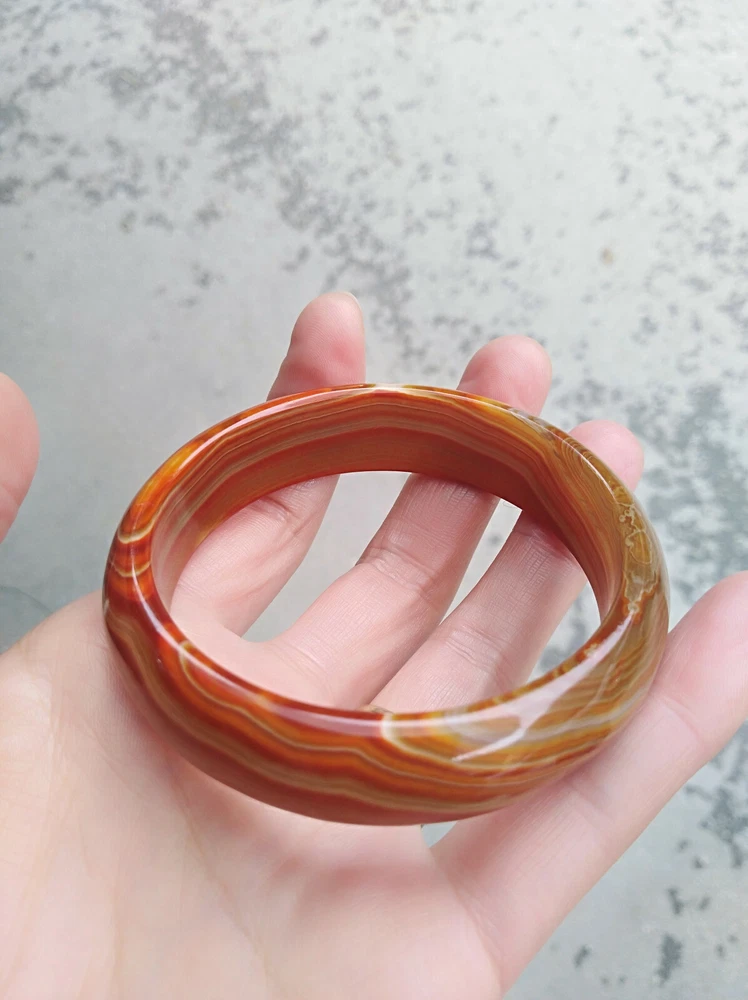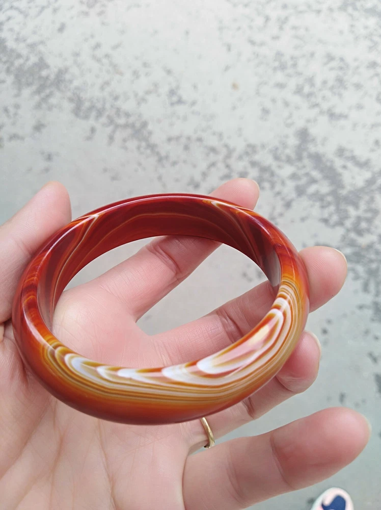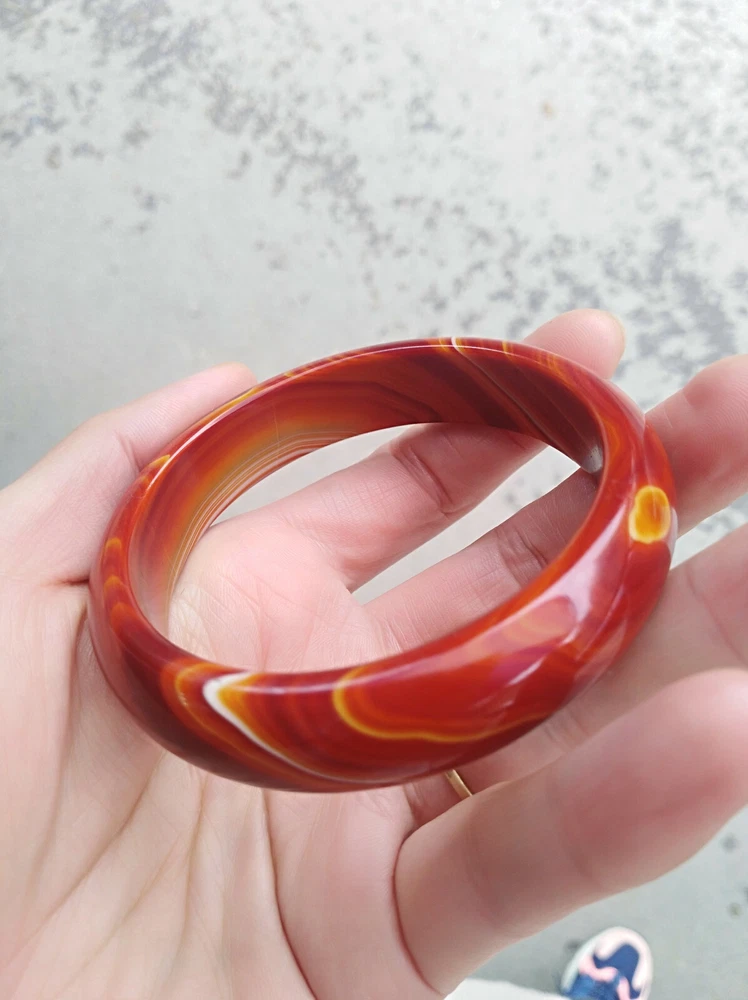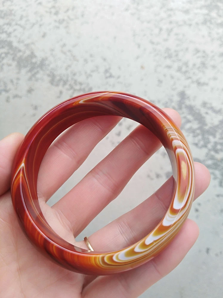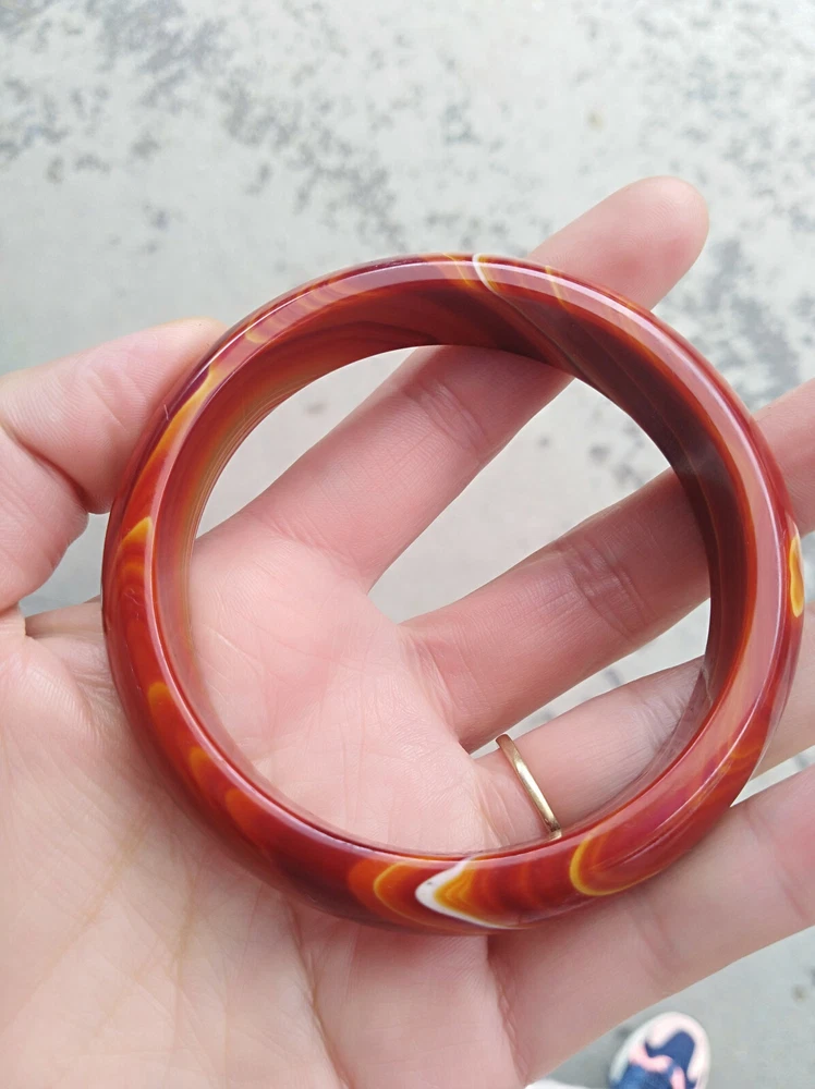 Red Agate Bangle Bracelet with Natural Patterns in 60 62 64mm Sizes