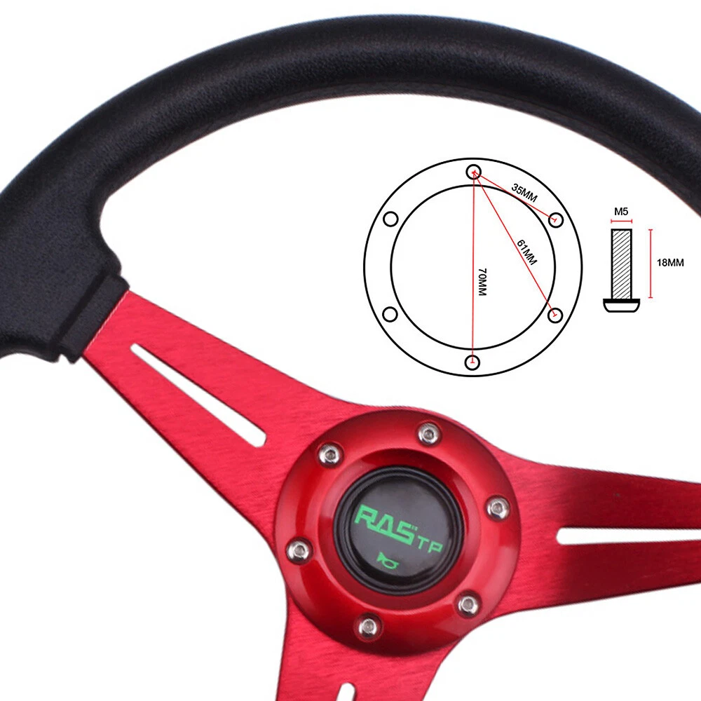 Red 350mm Racing Steering Wheel Drifting Deep Dish +Ball Quick Release Adapter Specifications: 【Steering Wheel】 Diameter: 13.5 Inches / 345mm 3.7inches / 95mm Deep Dished Light Weight & Durable Alloy Spoke Standard 6 Bolt Fitment 【Quick Release Adapter】 Billet Aluminum Body, Good Bearing Capacity, Durable in Using. With 6 Long Screws and 6 Short Screws for Various Snap off Needs, Ball-lock Type Mechanism for Best Locking Fit and Usability. Easy to Operate, Direct Bolt-on, Fast Detach Allows Steering Wheel to Be Removed Quickly. Compatible with 6-Hole Steering Wheel Hub Kit, Designed for Many Aftermarket Racing Steering Wheel. Package Include Only a Steering Wheel and a Quick Release Adapter, Must Be Installed with Hub Adapter (Not Include, Need Purchase Separately). Package Included: 1 X Steering Wheel Kit 1 X Quick Release Adapter Kit All Items Are Brand New Unless Stated Otherwise on the Listing. We Sell Diy (Do It Yourself) Items with a Few Exceptions. We Take No Responsibility in Teaching You How to Install. Professional Installation Is Strongly Recommended. SHIPPING INFORMATION PAYMENT WARRANTY ABOUT US CONTACT US SHIPPING INFORMATION We will only ship this item to buyers by Normal Mail, please confirm your address is correct, and if you want to change the delivery address, just feel free to contact us when you purchase. Usually, we will ship the orders out and upload the tracking number within 1-2 business days(Monday to Saturday from 8:30am-5:30pm) after you complete the payment. PAYMENT We will only accept eBay payment. Please pay using eBay payment ONLY within 7 days from the date of transaction be made. WARRANTY Please inspect your order upon receipt.No damage claims will be honored after 14 days of delivery. All item we sold come with 90 days defective warranty from the date. ABOUT US We are a powerful factory producing auto parts,and we have a professional sales and after-sales team that can provide you with excellent products and services. CONTACT US For any reason you want to contact us,We aim at satisfying every visitor, no matter what kind of situation you meet with, we will be right here to serve you. Please contact our team. If you are happy with the transaction with us, leaving us an ALL-5-STAR positive feedback would be greatly appreciated. Have a good shopping.
