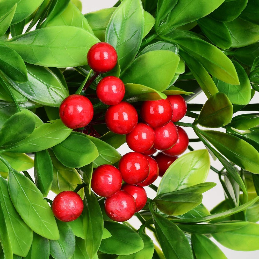 Red Berry Christmas Wreath 15 Inch Artificial Schefflera Green Clearance