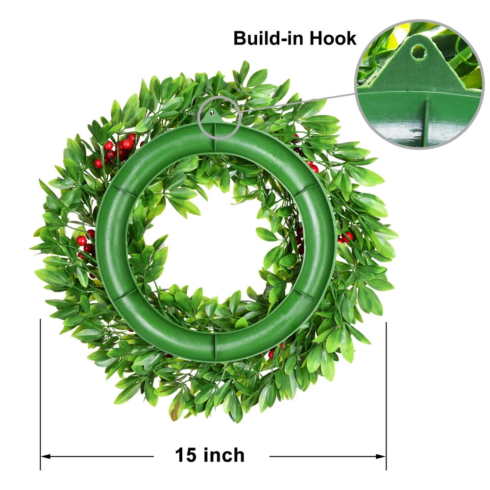 15 Inch Christmas Green Wreath with Red Berry Transform your bland front door into a vibrant, attractive entryway that welcomes your closest family and friends into your home all winter long, specially designed for christmas. If you are looking for that special wreath to embellish your front door seasonal décor, this is the wreath for you! Features: Fit easily over any door, window, wall or above the fireplace. Suitable for outdoor/indoor use - UV-resistant rated materials are approved for outdoor use, no need to worry about snowy or rainy day. Christams theme decoration - With a red and green theme, this red berry wreath is sure to shine, impress, and match any of your existing Christmas Decor. Great gift choice - No matter if it is a housewarming gift, a Christmas gift, or a birthday gift for your favorite someone, your loved ones are sure to LOVE it. Specifications: - Size: 15 inches diameter, 3 inches depth - Material : Plastic, foam Satisfaction : Protected by 30 Day MONEY BACK , please us directly with any issue. 【Middle-sized Christmas Wreath】-- Measures 15 inches in diameter and 3 inches in depth, appropriate size for hanging on your front door or above the fireplace. 【Elegant Design】-- This delightful Christmas door wreath features a stable green wreath base, with schefflera leaves and red berries attached on it. 【Versatile Christmas Decoration】-- Place on your front door or window to welcome guests, or simply hang it inside over a sofa or fireplace to bring holiday atmosphere for whole family. 【Superior Material】-- The green leaves are made from quality plastic, red berries are made of lightweight foam, making for this adorable Christmas door wreath. 【Warm Tips】-- Wreath may be slightly out of shape due to transportation, please adjust the leaves to make it look like shown in the picture.
