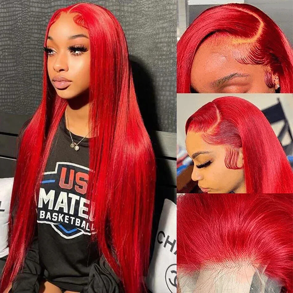 Description Report Item / Suspicious Activity Red Burgundy Brazilian Straight HD Lace Frontal Wigs Human Hair Glueless Pre Plucked 13x4 Colored Lace Front Wigs Bleached Knots