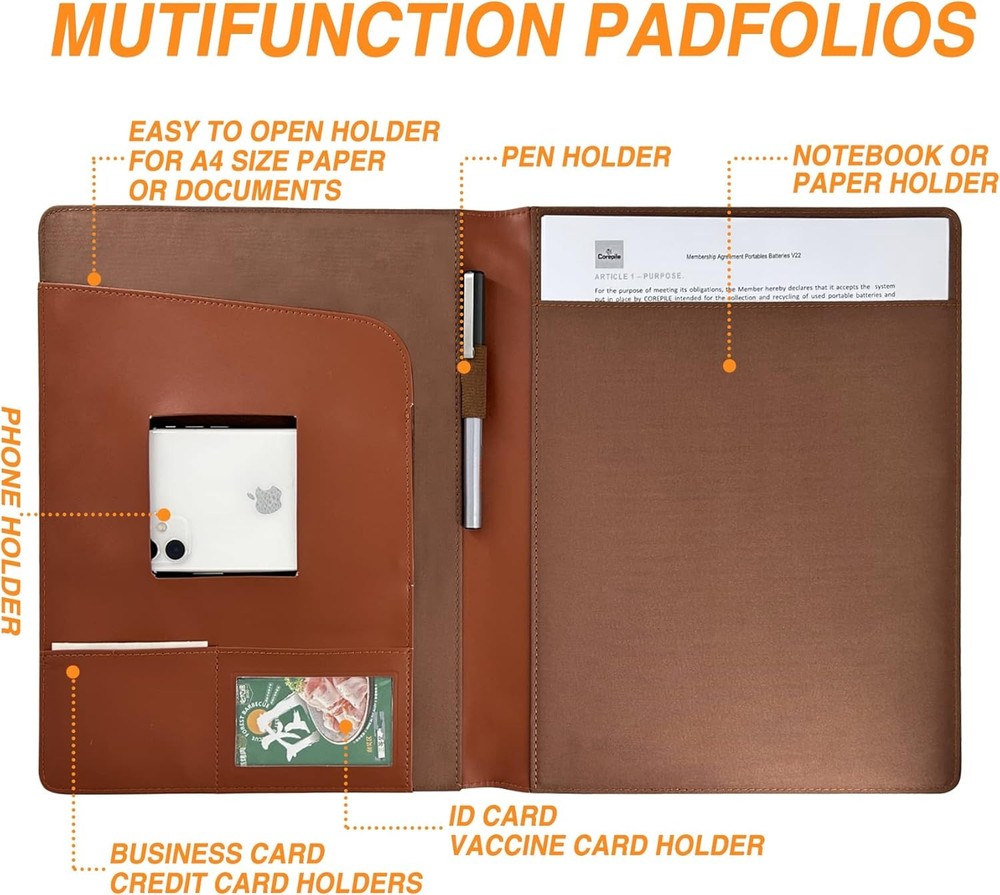 Leather Portfolio Folder Padfolio, Business Padfolio Organizer A4, Red Brown Product Details Manufacturer: Qinwen Industry Brand: Generic Item Weight: 10.6 ounces Product Dimensions: 12 x 9.5 x 0.04 inches Item model number: QW-USPaperholder00 Color: Red Brown Material Type: Faux Leather Size: A4 Sheet Size: A4 Manufacturer Part Number: QW-USPaperholder00 Color: Red Brown Material: Faux Leather Brand: Generic Sheet Size: A4 Product Dimensions: 12"L x 9.5"W 【Leather Portfolio】The padfolio is made of high quality faux leather, which is lightweight, portable, durable, resistant to dirt and not easy to break and deform. The leather organizer is designed with 2 pockets, 2 card holders, a pen loop, a multifunctional pocket (paper and pen are NOT included). 【Size】The portfolio folder size is 12"x9.5"x0.9" with 8.5*11" horizontal pocket on the right side. With the assistance of it, you can easily organize business documents, letters, notes, envelopes, cards, and other stuff, make your work more efficient. 【Multifunctional Document Organizer】The leather portfolio is as big as possible to be comfortable, functonal and stylish. It can hold an iPad, notepad, files on the right side (horizontal pocket) or on the left side (vertical flap), office supplies like paper clips, scissors, etc, mail, note pads, specific spots on the left side for business cards, ID cards and drivers' license as well. 【Classical Design】The leather portfolio is simple. It's straight forward and basic as there's not a dizzying amount of pockets, and hide holes inside it. 【Present】It is ideal for present wrapping or protective storage. You can send it at Christmas, birthday or party as intended as part of a theme gift to friends or business colleagues. Leather Portfolio Folder Padfolio, Business Padfolio Organizer Document Planner Portfolio Binder Storage Pocket for Legal Pad Holder Paperwork Phone Men Women Red Brown