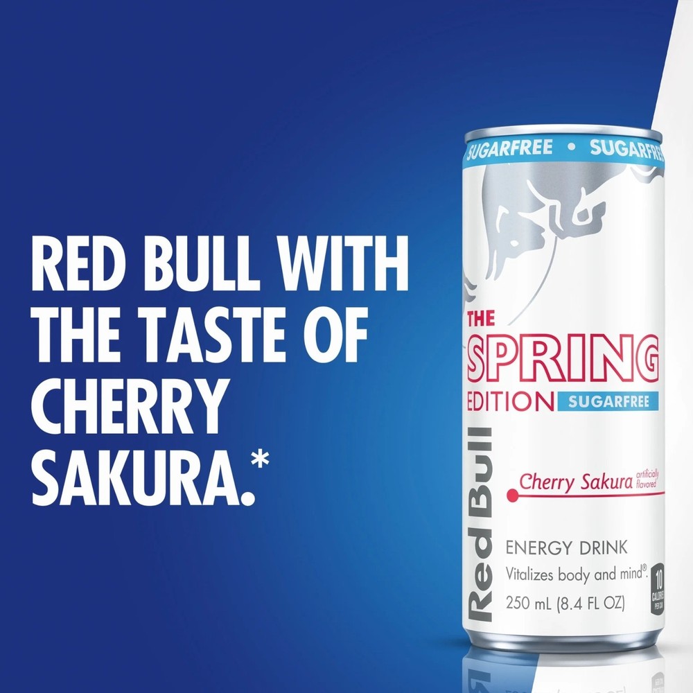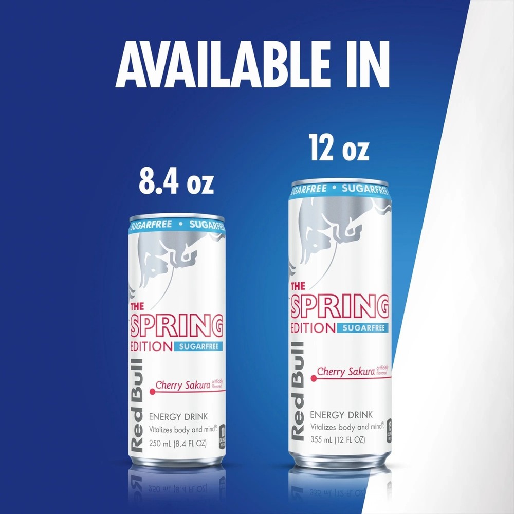 The Red Bull Spring Cherry Sakura SUGAR FREE Edition Energy Drink is a 24-pack of 12 fl oz cans, featuring a unique Cherry Sakura flavor with only 50-100 calories per serving. This vegetarian energy drink from Red Bull is perfect for fitness enthusiasts and those looking for a refreshing beverage with a boost of energy. With an original recipe and a long expiration date of September 7th 2026, this drink is sure to provide a delicious and invigorating experience for consumers in the United States.
