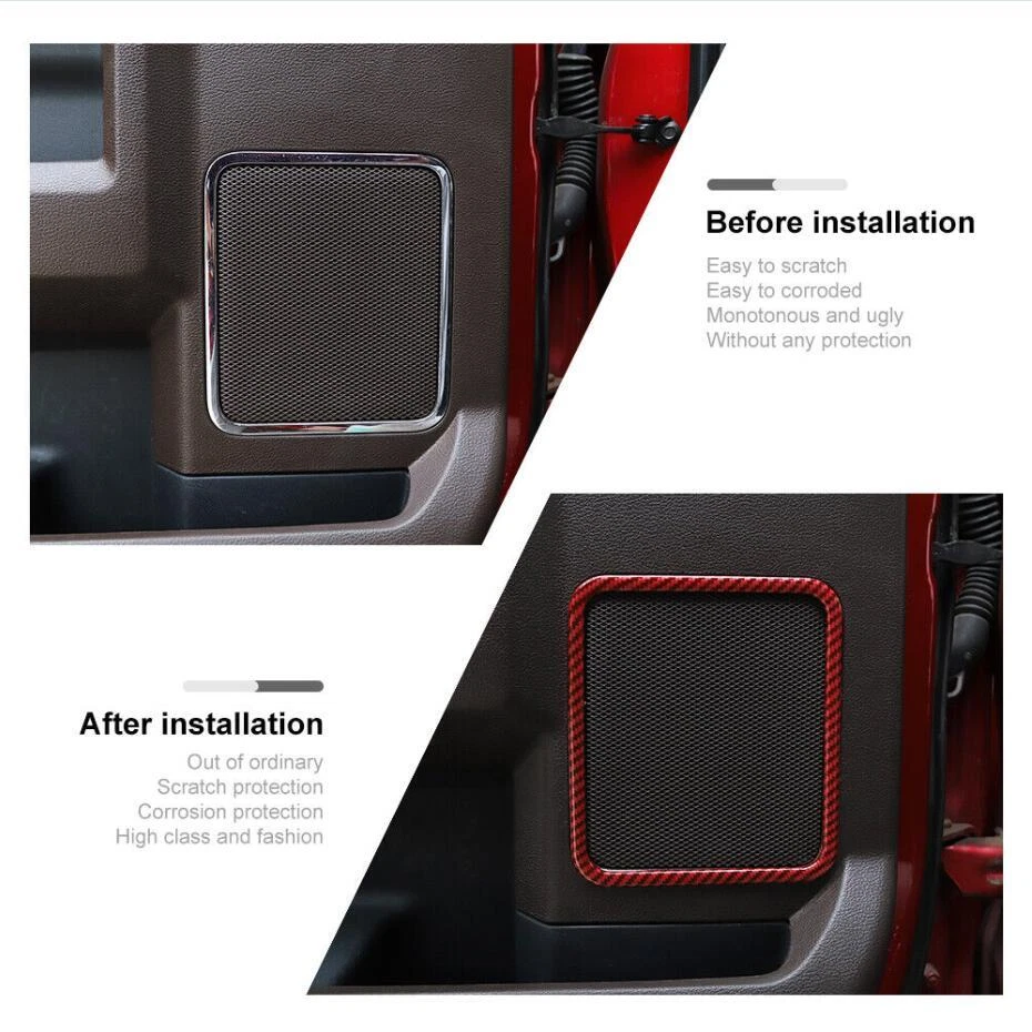 Red Carbon Car Door Speaker Cover Trim Frame for Ford F150 2015-2020