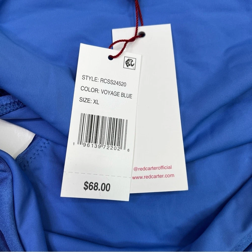 Red Carter Shine Solids O-Ring High Waisted Bikini bottoms voyage blue - XL Brand: Red Carter Size: XL Type: Bikini Bottoms Color: Voyage Blue Closure: Pull On Material: Nylon, Spandex Condition: New With Tags Red Carter Shine Solids O-Ring High Waisted Bikini Bottoms in Voyage Blue. Featuring a flattering high-waisted silhouette, these lined bottoms offer moderate bottom coverage for a balanced mix of style and comfort. Shiny O-ring accents and beaded details elevate the look with a hint of sophistication—perfect for turning heads at the pool or beach. NWT - retail $68 Vacation, Resort Wear, Beach, Cruise, Travel, Tropical, Island, Beachy, Coastal, Pool