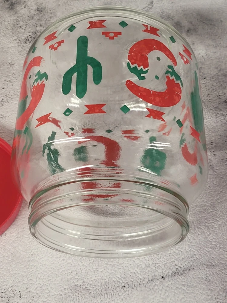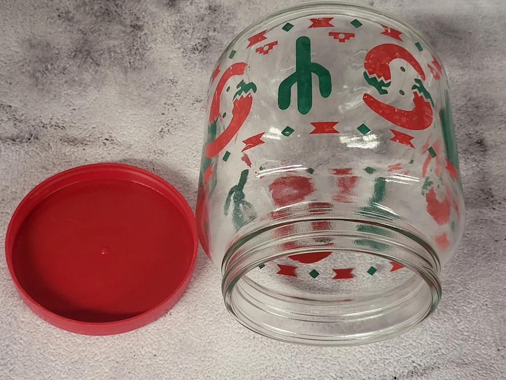 Red Chili Pepper Glass Jar With Cactus & Lid Vintage 1 Qt Southwestern Pattern