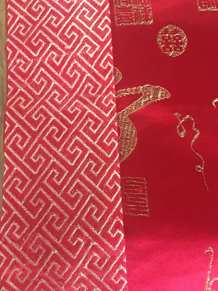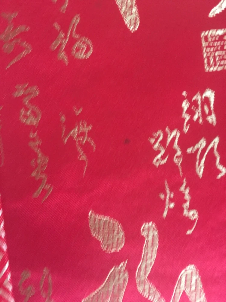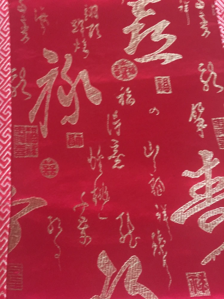 Red Chinese Silk Brocade Embroidery Table Runner With Tassels Chinese Characters Size: 72" x 12.25" Great shape. Some stain shown. Pleasesee picture for more details.. ||MSMM-HO- TO2307251794882REDRUNNER