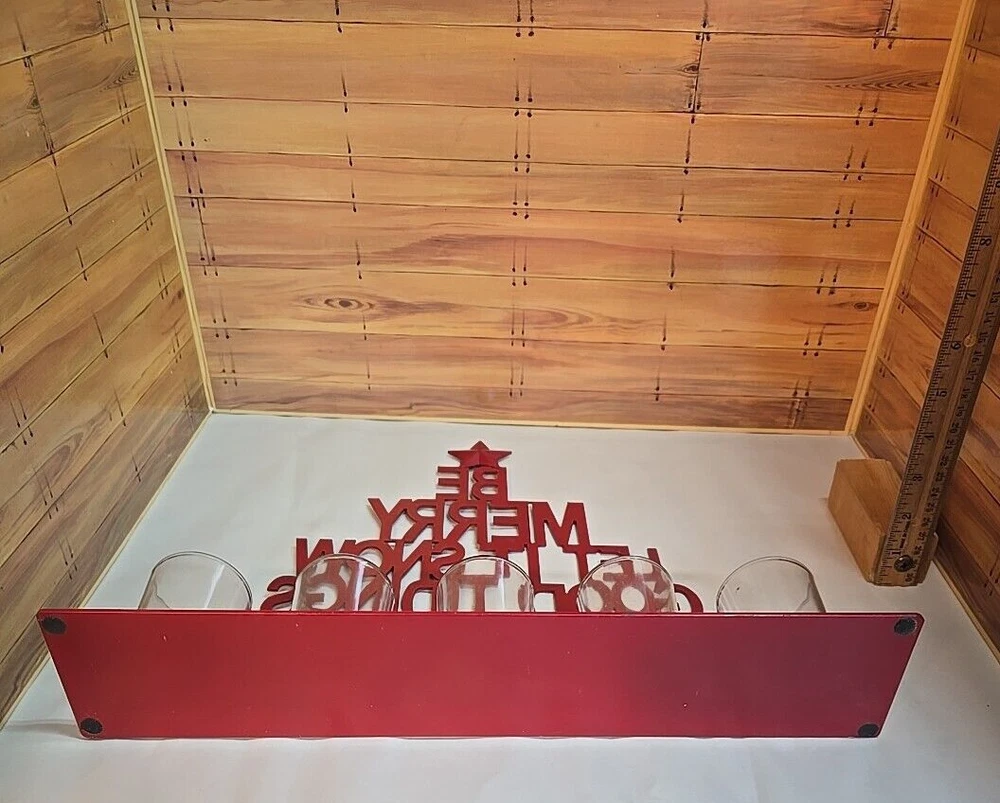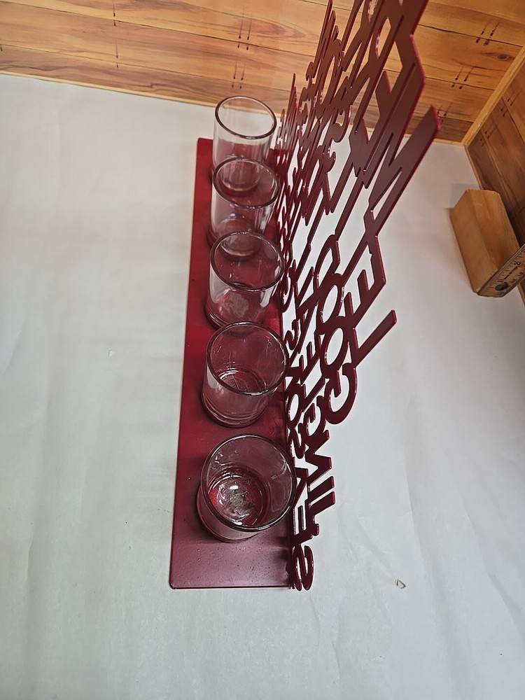 Christmas Seasonal Candle Votive; Five Candles; Red; 12" High x 16" Wide Star on Top Be Merry Let it Snow Good Tidings; Jingle All the Way Seasons Greetings Please message me if you have any questions prior to purchase. *Disclaimer* - we will deliver the item to the carrier within one business day of payment received. Once given to the carrier, we can only track the item using the tracking information that we will provide. We cannot guarantee that your item will be delivered as stated by the carrier on time as there may be shipping delays caused by the carrier. In addition, we are not responsible for packages stolen if the shipping indicates the package has been delivered.