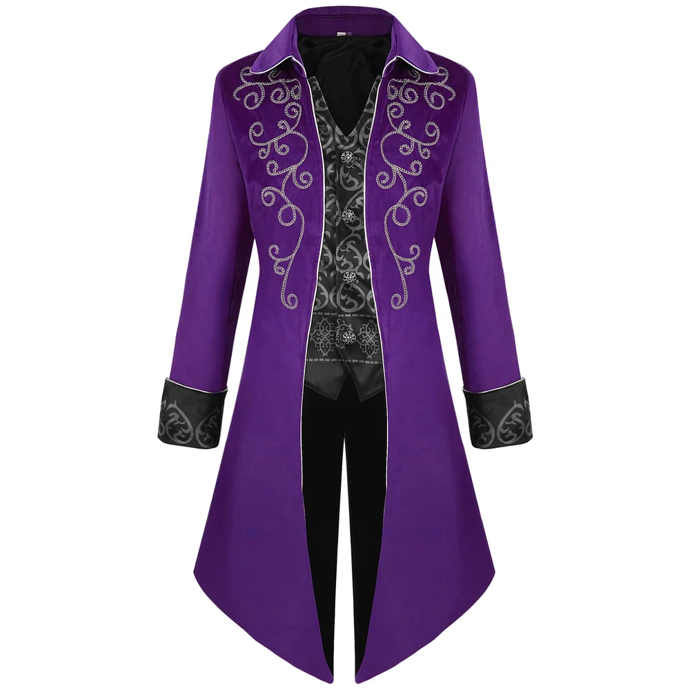 $ 89.242026 Spring New Men's Purple Embroidered Tuxedo, Vintage-Style Blue Trench Coat,