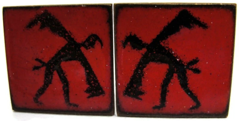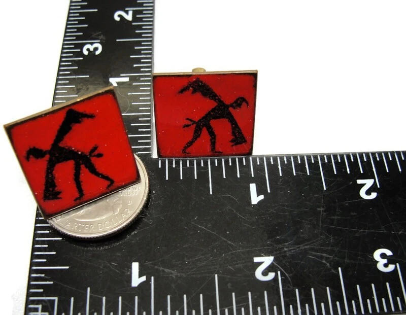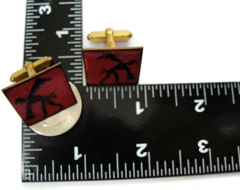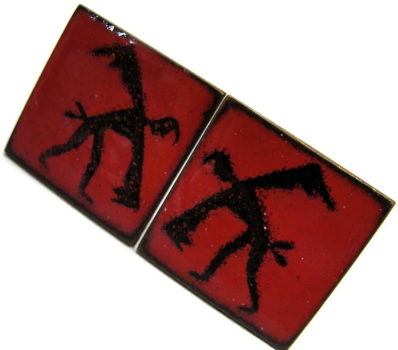 Red Enamel Copper Cufflinks Square Shirt Accessories Wedding Vintage