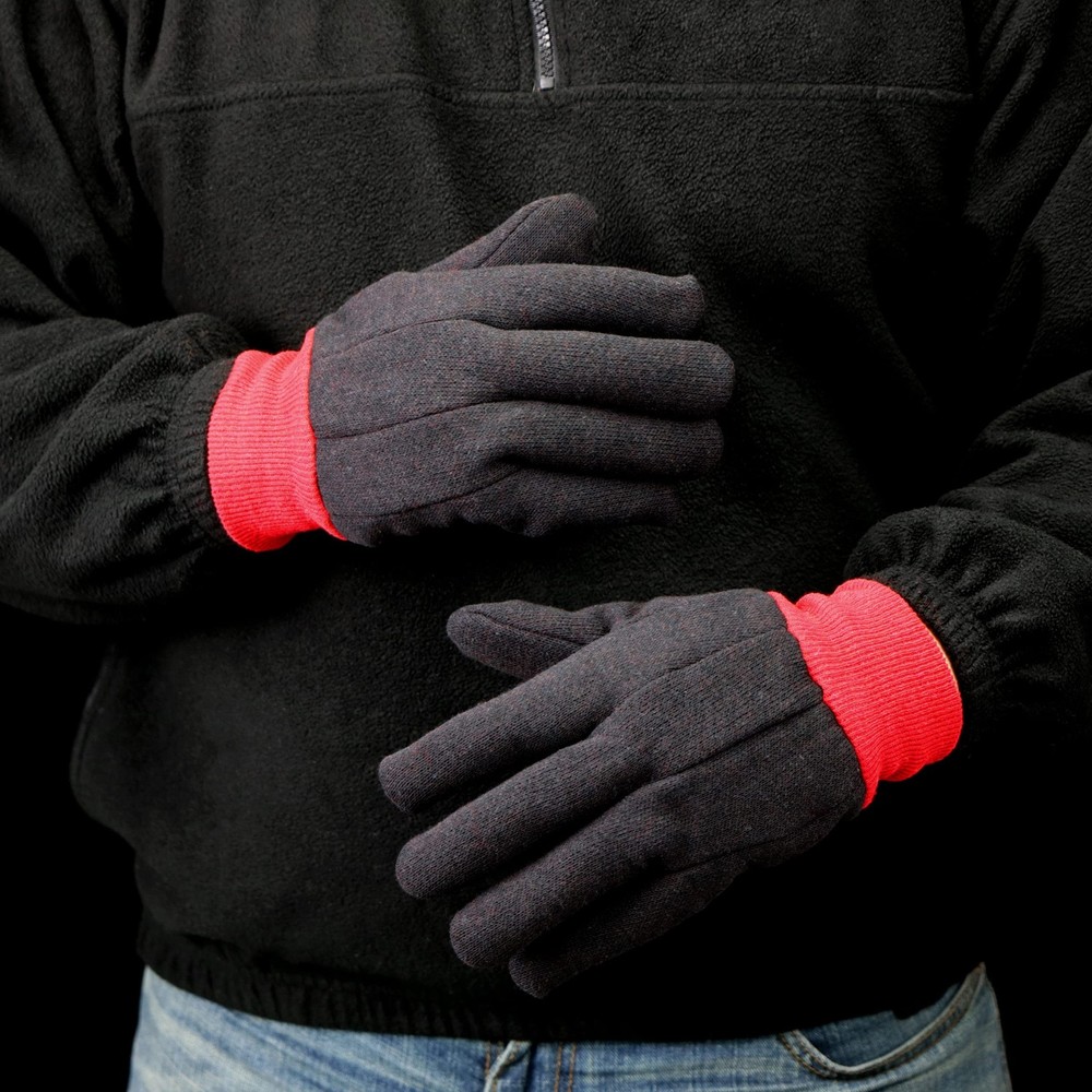Cold Weather Protection: the winter work gloves are designed with a fleece lining that keeps heat insulated to ensure you stay warm and comfortable in the colder winter months, ideal for light duty work, driving, traveling, or leisure activities Hand Protection: the lightweight work gloves are designed to protect your hands in light duty applications and the straight thumb design is partially cut as one piece with the palm making it ideal for closed fist applications such as holding tools or equipment Extreme Comfort: the jersey material is very soft, breathable, and flexible for added comfort for the user, this allows for excellent freedom of motion and dexterity while performing all of your household chores, the fleece lining offers a soft a comfortable feel inside the glove Knit Wrist Closure: The safety gloves are designed with an elastic knit wrist which ensures a snug and secure fit, this also seals out any unwanted dirt and debris from entering the glove Applications: the winter gloves are perfect for all of your outdoor light duty general purpose applications including light industrial work, cleaning, warehouse work, tool and equipment handling, DIY projects, traveling, driving, and more Target gender: unisex