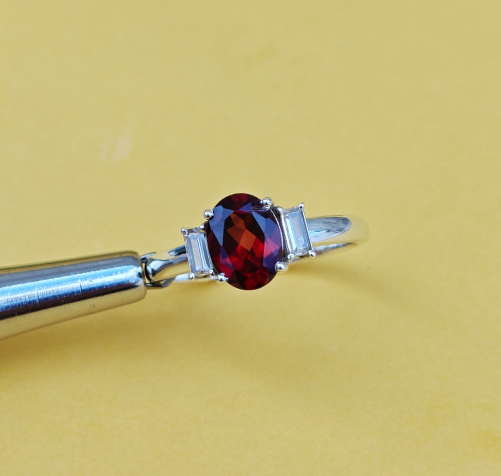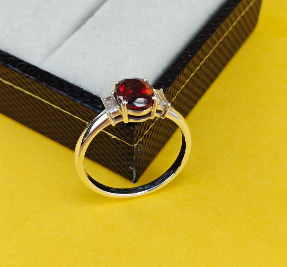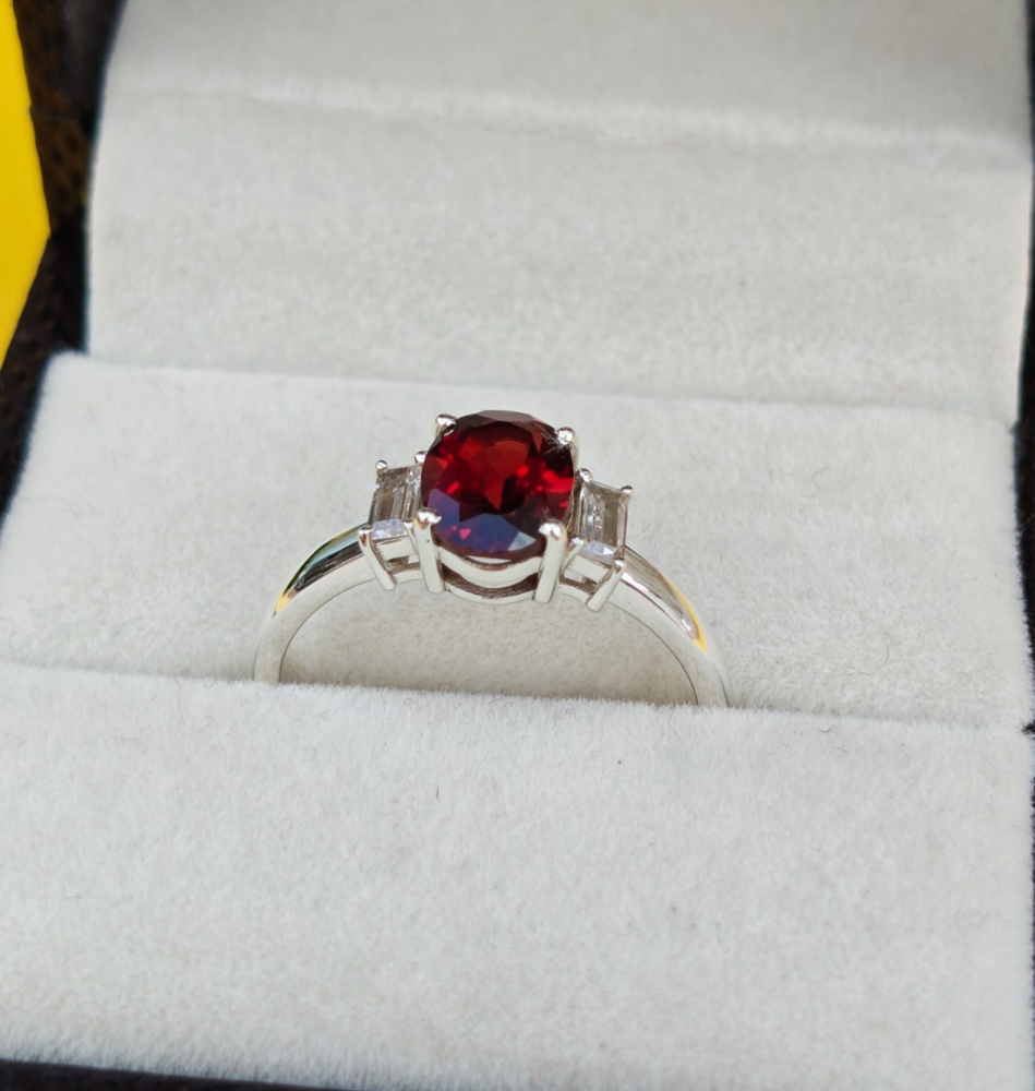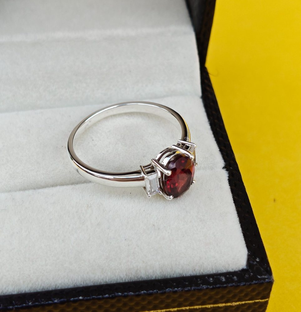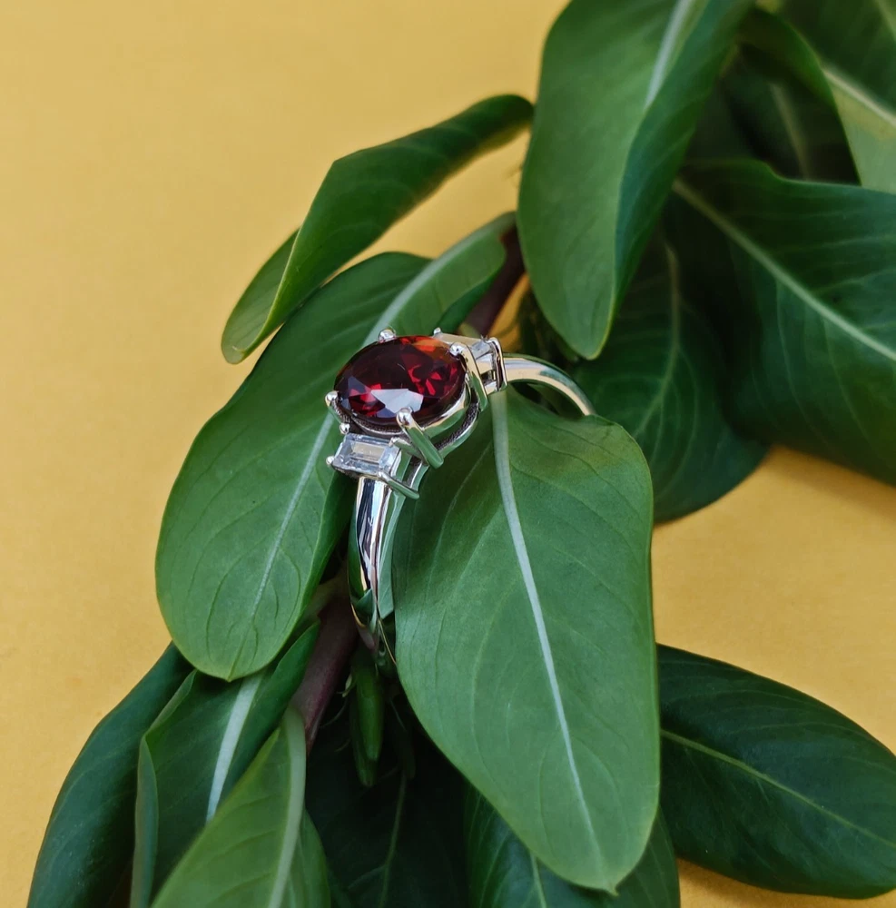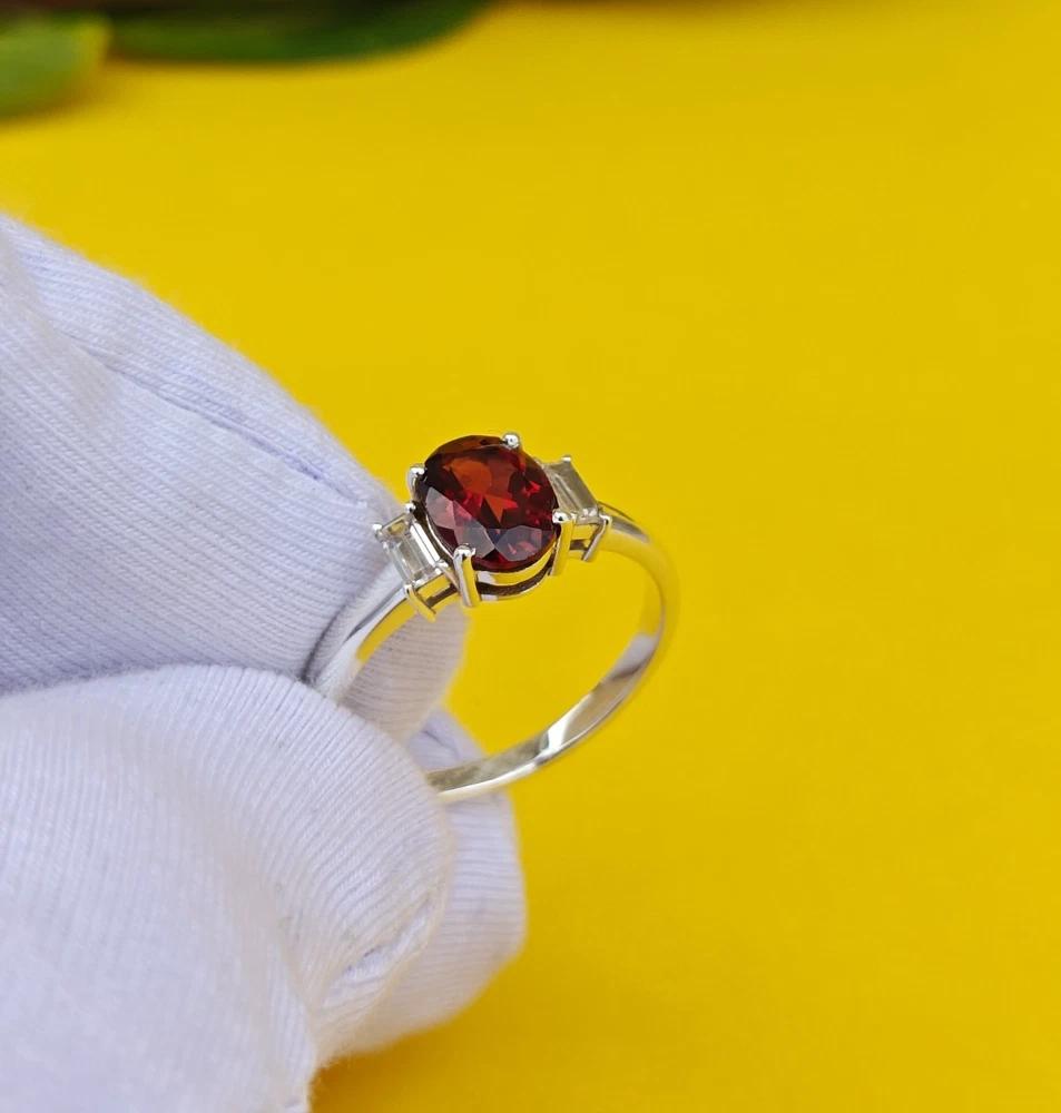 This handmade 925 sterling silver ring features a beautiful red garnet gemstone in an oval shape, accented with baguette stones in a prong setting. The ring is antique-style and perfect for various occasions such as Mother's Day, wedding anniversaries, birthdays, and Valentine's Day. It is personalized and nickel-free, with a gemstone clarity grade of Loupe Clean. The beauty and elegance of this cocktail ring make it a perfect gift for someone special, with a theme of love, beauty, and fantasy. Made in India, this ring is a unique and exquisite piece of fine jewelry. ๐๐ฉ๐๐๐ข๐๐ข๐๐๐ญ๐ข๐จ๐ง๐ฌ ......... ๐๐๐ฆ๐ฌ๐ญ๐จ๐ง๐ : Red Garnet โ Gemstone Shape : oval โ Gemstone Color : Red โ Gemstone Size : 8x6 ๐๐๐ญ๐๐ซ๐ข๐ l : 925 Sterling Silver โ Color: Silver โ Gross Weight : 2.30gm (approx.) ๐"As manufacturers, we can create this gemstone stud earrings in various colors, shapes, and sizes. Custom designs are welcome...๐ธ โจ ๐๐๐๐๐ผ๐บ ๐ข๐ฟ๐ฑ๐ฒ๐ฟ๐ & ๐ฃ๐ฒ๐ฟ๐๐ผ๐ป๐ฎ๐น๐ถ๐๐ฎ๐๐ถ๐ผ๐ป We love making jewelry thatโs as unique as you are! If you have a custom design idea or want to adjust the size of any item, just send us a message. Weโre happy to create something special tailored just for you. Custom Orders May Require Additional Time For Crafting . ๐ฆ ๐ฆ๐ต๐ถ๐ฝ๐ฝ๐ถ๐ป๐ด ๐ข๐ฝ๐๐ถ๐ผ๐ป๐ We Use UPS Express and Standard Shipping Service: For express delivery please contact us to make sure product reach you on time. Products are fully insured for loss or theft during transit. โ RETURNS accepted for valid reason. You will get refund or exchange within 15 days of your delivery date. โ NOTE : All Import taxes and duties, vary from country to country and buyers are responsible for their country taxes and duties. Visit our Shipping Policy page for more details. In order to minimize the duty in your country, please contact us. โ NOTE : 925 Sterling silver jewelry can tarnish over time or depends on usage. We are not liable for the same. Therefore, please use it gently. โญ ๐๐ฒ๐ฒ๐ฑ๐ฏ๐ฎ๐ฐ๐ธ Your happiness means the world to us! If you love your order, please consider leaving a positive review and a five-star rating. Your support helps our small business grow and thrive. โจ ๐ข๐๐ฟ ๐ท๐ฒ๐๐ฒ๐น๐ฟ๐ ๐ถ๏ฟฝ๏ฟฝ ๐ต๐๐ฝ๐ผ๐ฎ๐น๐น๐ฒ๐ฟ๐ด๐ฒ๐ป๐ถ๐ฐ โ ๐๐ต๐ผ๐๐ด๐ต๐๐ณ๐๐น๐น๐ ๐ฐ๐ฟ๐ฎ๐ณ๐๐ฒ๐ฑ ๐๐ถ๐๐ต๐ผ๐๐ ๐๐ฎ๐ฑ๐บ๐ถ๐๐บ , ๐๐ฒ๐ฎ๐ฑ , ๐ผ๐ฟ ๐ก๐ถ๐ฐ๐ธ๐ฒ๐น ๐๐ผ ๐ฒ๐ป๐๐๐ฟ๐ฒ ๐๐ฎ๐ณ๐ฒ ๐ฎ๐ป๐ฑ ๐ฐ๐ผ๐บ๐ณ๐ผ๐ฟ๐๐ฎ๐ฏ๐น๐ฒ ๐๐ฒ๐ฎ๐ฟ ๐ณ๐ผ๐ฟ ๐ฒ๐๐ฒ๐ป ๐๐ต๐ฒ ๐บ๐ผ๐๐ ๐๐ฒ๐ป๐๐ถ๐๐ถ๐๐ฒ ๐๐ธ๐ถ๏ฟฝ๏ฟฝ . ๐ ๐ก๐ฒ๐ฒ๐ฑ ๐๐ฒ๐น๐ฝ ? Questions or concerns? Feel free to message us anytime before or after your purchase. Weโre here to assist and love hearing from you ! Thank you so much for supporting our shop ! ๐