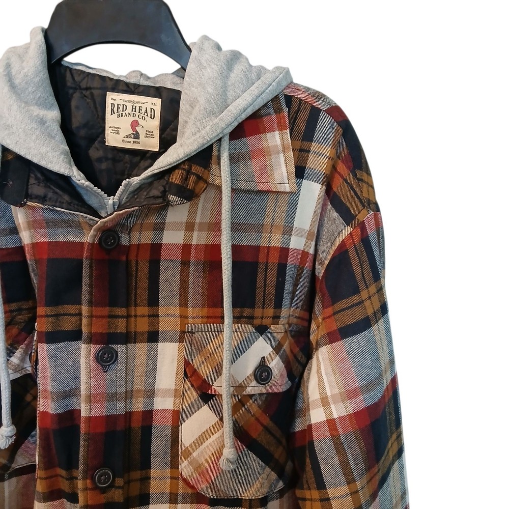 NEW Red Head Button Up Lined Flannel Hoodie Jacket Red Mulicolor Plaid Men’s Size Large No Defects! Looks Great! *Laying Flat Pit to Pit 24" *Laying Flat Shoulder to Hem 30" *Items Shipped With 1 Business Day Or Less! All Reasonable Offers Accepted. 100%Satisfaction Guaranteed *Smoke Free Home