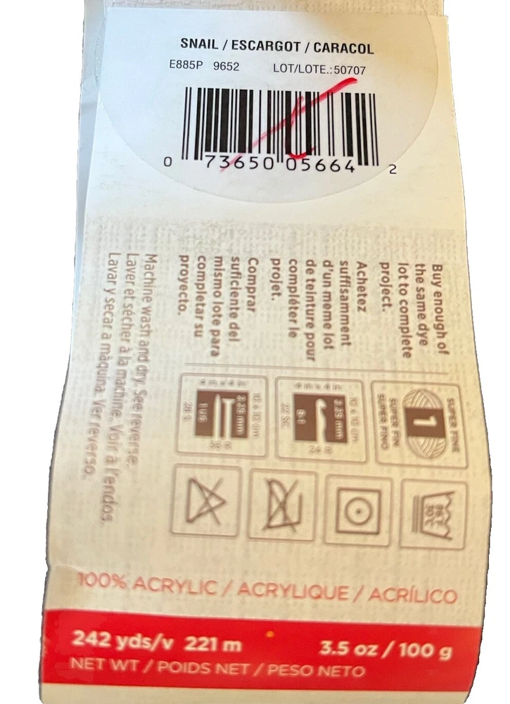 UPC:0073650056642Brand:Red HeartWeight:1 - Super Fine/SockFiber Content:AcrylicSuitable For:Crafts, Knitting, Crochetinggtin13:0073650056642Country/Region of Manufacture:ChinaStyle:SockColor:Multi-ColorShape:BallModel:SnailType:ThreadProduct Line:AmigurumiUnit of Sale:Unit
