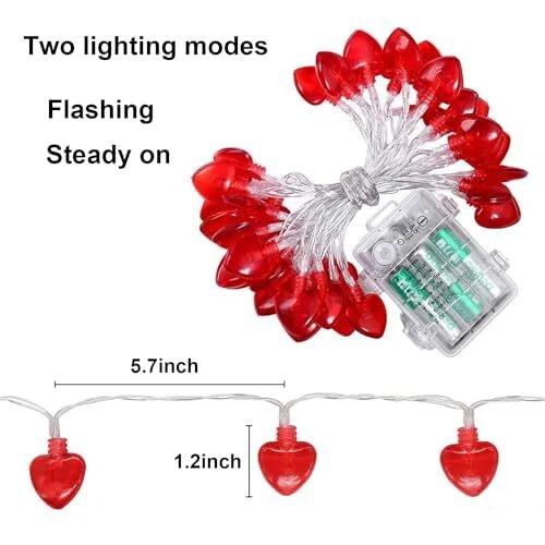 Menu 1. We require immediate payment. 2. We currently accept payment via eBay managed payments only. 3. Once payment is cleared, we will dispatch your shipment within 1-3 business days. Please refer to the "Shipping" tab for more information regarding shipping speed to your destination. Red Heart String Lights, 9.8Ft 20LEDs Valentines Day Decorations String Lights, Wedding Anniversary, Christmas, Holidays Day Decor for Indoor Outdoor Home Room Hanging (Red) Product description [Battery operated]: Powered by 3*AA batteries (not included) so they will not limited by the power cords. Easy to hang on wall, ceilings, doors, fireplace, windows, etc [Heart shaped lights]: Suit for Valentines Day, Mother's Day, Wedding Anniversary, Birthday, Christmas, Weddings, Anniversaries or Parties [Two lighting modes]:Flashing and Steady on. Cute red heart-shaped string lights decorate your home during the day or night [For indoors and outdoors]: Waterproof they will stand up to any weather conditions if you use them outdoors. The power supply is safe and low voltage [Designed for Valentines Day]: The Valentines Day string light is designed with bright red heart-shaped bulbs, the warm light brings you a romantic feeling and peaceful atmosp, easily create a harmonious and dreamy environment for your Valentine's Day, which will surely impress your lover PLEASE MESSAGE US IF YOU HAVE ANY OTHER QUESTIONS, AND MANY THANKS FOR READING ALL OF THIS. Copyright ©#. All Rights Reserved.
