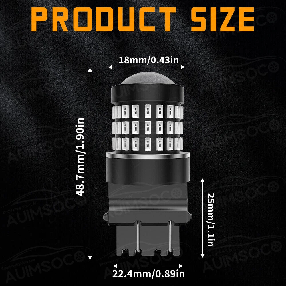 Home Payment Shipping About us Contact us Details About this item [A Higher Level of Visibility] Using high power 3014 SMD LED chips, 54 chips per bulb to produce peak brightness output, and less heat compared to other bulbs that sometimes use 10 chips. Make a big difference for your vehicle! [Non-Polarity Design] Directly replace your factory halogen lamp perfectly with the same socket and electrical connector, for plug and play installation. You needn't worry whether you have a CK or Non-CK socket, these bulbs are universally [Excellent Heat Dissipation Construction] AUIMSOCO bulbs use built of lightweight and high-strength aluminum alloy as bulb body to keep themselves cool, even if they're used in constant-on applications like daytime running lights, they still illuminate non-fading brightness. [Built-in Constant Current IC Driver] A constant current driver is a device that takes any incoming voltage and smooths it out, regulates it, so a steady stream of voltage/current reaches the LED, ensures a bright, efficient and long-lasting illumination. Specification: Application:backup reverse lights, Daytime Running Light,brake tail light,Parking light etc. LED Chip:3014 SMD High Lumen:1200Lm/per bulb, 2400LM/per Set Color Temperature:RED Waterproof Level:Waterproof & Shockproof Working Voltage:DC 9V to 18V Beam Type:360°Beam Angle, no dark spots Lifetime:More than 30000 hours Brightness: No dark spots, 300% Brighter Feature: Low consumption, New look, No polarity design, plug&play, easyinstallation. Just plug & play Used for reverse lights Canbus error free Size: as photo showed. CANBUS: YES, ERROR FREE, Just plug & play Used for Vehicle Backup reverse lights, Daytime Running Light, Brake tail light, Parking light etc. Package including: 2x Red 3157 LED led bulb Shipping Policy Payment Method Returns Policy Shipping Policy Payment Method Returns Policy Home Payment Shipping About us Contact us Store Categories Store Categories LED Headlights H7 H8/H9/H11 9003/H4/HB2 9004/H3 9005/HB3 9006/HB4 9007 9008/H13 LED Fog/Driving Lights H8/H9/H11/H16JP H10/9145/914 H16/5202 9005 9006 880/890/899 881/886 H3 Tools & Stickers For Ford ICE BLUE 8000K WHITE 6000K For Chevy ICE BLUE 8000K WHITE 6000K For GMC ICE BLUE 8000K WHITE 6000K For Dodge WHITE 6000K ICE BLUE 8000K For Ram ICE BLUE 8000K WHITE 6000K For Honda WHITE 6000K ICE BLUE 8000K For Toyota ICE BLUE 8000K WHITE 6000K For Nissan WHITE 6000K ICE BLUE 8000K For Subaru ICE BLUE 8000K WHITE 6000K For Jeep WHITE 6000K ICE BLUE 8000K For Acura ICE BLUE 8000K WHITE 6000K For Mitsubishi WHITE 6000K ICE BLUE 8000K For Cadillac ICE BLUE 8000K WHITE 6000K Other Details About this item [A Higher Level of Visibility] Using high power 3014 SMD LED chips, 54 chips per bulb to produce peak brightness output, and less heat compared to other bulbs that sometimes use 10 chips. Make a big difference for your vehicle! [Non-Polarity Design] Directly replace your factory halogen lamp perfectly with the same socket and electrical connector, for plug and play installation. You needn't worry whether you have a CK or Non-CK socket, these bulbs are universally [Excellent Heat Dissipation Construction] AUIMSOCO bulbs use built of lightweight and high-strength aluminum alloy as bulb body to keep themselves cool, even if they're used in constant-on applications like daytime running lights, they still illuminate non-fading brightness. [Built-in Constant Current IC Driver] A constant current driver is a device that takes any incoming voltage and smooths it out, regulates it, so a steady stream of voltage/current reaches the LED, ensures a bright, efficient and long-lasting illumination. Specification: Application:backup reverse lights, Daytime Running Light,brake tail light,Parking light etc. LED Chip:3014 SMD High Lumen:1200Lm/per bulb, 2400LM/per Set Color Temperature:RED Waterproof Level:Waterproof & Shockproof Working Voltage:DC 9V to 18V Beam Type:360°Beam Angle, no dark spots Lifetime:More than 30000 hours Brightness: No dark spots, 300% Brighter Feature: Low consumption, New look, No polarity design, plug&play, easyinstallation. Just plug & play Used for reverse lights Canbus error free Size: as photo showed. CANBUS: YES, ERROR FREE, Just plug & play Used for Vehicle Backup reverse lights, Daytime Running Light, Brake tail light, Parking light etc. Package including: 2x Red 3157 LED led bulb Shipping Policy Payment Method Returns Policy Shipping Policy (1) All items will be shipped in 1-2 work day after receiving your payment . (2) We ship this item to US only via USPS first class mail. It usually takes 3-6 working days to deliver. It may take 5-8 working days for remote areas, please be patient. (3) Tracking numbers for all orders are added to eBay once they have been dispatched; please login to eBay to find the tracking information for your order. Payment Method 1. You can use a variety of payment methods such as credit, debit, and gift cards, Apple Pay, Google Pay, PayPal, and PayPal Credit. 2. Items will be shipped to your eBay address. Please make sure it is correct. 3. Payment must be received 4 days after auction ended. Returns Policy (1). We offer 60 days return policy. Please contact us within 60 days t from the date you receive your order if you have any issues with the product or want return .Refund will be send after we got your resend package. (2). All returned items should be in the original packaging , return tracking information should be provided .. (3). Buyer is responsible for return shipping cost due to the problem not caused by item quality itself .
