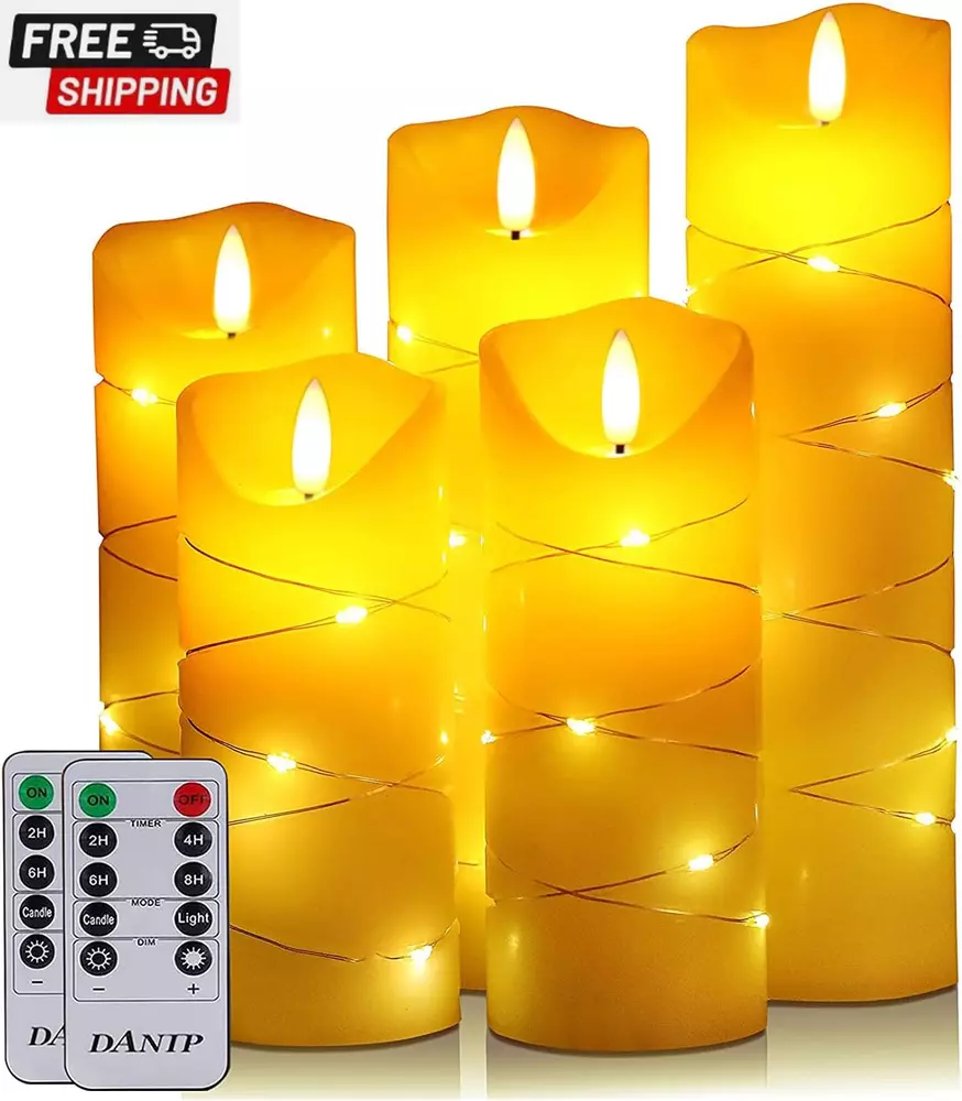 Red LED Flameless Candle with Embedded Star String, 3+4-Piece Set of LED Candles, with 11 Button Remote Control, 24-Hour Timer Function, Flashing Flame, Real Wax, Battery Powered. (Red) ✔New embedded starlight string technology: each candle is wrapped in a silver filament lamp. These light strings consist of 12 to 16 LED fairy lights to provide small, bright dots and a unique and charming appearance. ✔ Realistic flame simulation technology: dancing flames, they will flicker and dance like traditional flame candles. The LED emits light and can be used safely around children and pets. LED candles will not really catch fire, and there is no need to worry about fire-related accidents. Each candle is powered by 2 AA batteries (not included) (requires advanced batteries) ✔10-key remote control: Press the NO button twice to independently control the starlight string. After setting the timer, light the candles at the same time every day for 2 hours/4 hours/6 hours/8 hours (with dual remote controllers) ✔ Real wax (ivory color): Compared with plastic candles, pure wax can produce a softer and more natural luster. These ivory candles are 5 inches, 6 inches, 7 inches, 8 inches, and 9 inches (2.2 inches in diameter), and each set has 5 stepped cylindrical candles. ✔ First choice for modern decoration: these decorative mobile wick candles can be widely used for birthdays, Christmas, home decorations, bars, hotels, parties, holidays, weddings or other occasions. The setting atmosphere of flameless dancing flame: DANIP 5-piece LED embedded light string candle set defines the atmosphere of any room with soft LED lights, flame simulation technology, they will flash and dance like traditional flame candles, but there is no dripping wax, smoke or soot. Add atmosphere and enjoy new conveniences. Embedded light string technology: Each candle is surrounded by bright and delicate light. Wrapped in a silver-finished light string, this is a unique aesthetic effect that combines the appearance of a fairy lamp with the classic beauty of a real flame candle, showing a classic and noble atmosphere. Powerful 10-key remote control: Press the NO button twice to independently control the starlight string. After setting the timer, light the candle at the same time every day, the duration is 2 hours / 4 hours / 6 hours / 8 hours feature: Dancing flames Built-in light string Real wax, bring soft and natural luster Five-tiered pillar candle Each candle requires 2 "AA" batteries (not included) Package Contents: 2 remote control A copy of the manual One 2.2x 5 inch pillar candle One 2.2x 6 inch pillar candle One 2.2 x 7 inch column candle One 2.2 x 8 inch column candle One 2.2 x 9 inch column candle note: eusable battery power, you can reuse them again and again, when you think the starlight and flame light is not bright enough, please replace the new battery. The effect is also excellent. Five-column candle is packed with a protective film, which can protect the candle from dust and make the candle look more noble and bright. When you are really inconvenient to use, you can tear the packaging film without affecting the appearance and effect of the product. Shipping Fast shipping is very important for us. Our standard US shipping service is FREE. Your order will be shipped within 2-3 business days upon full payment received. Your order will be delivered within 2-3 business days after the handling time. We only ship to the confirmed PayPal address. We reserve the right to cancel any order for any reason at any time. We are not responsible for undeliverable addresses. Returns and payment We offer a 30 days return policy from checkout winning date. We allow only PayPal as payment method FeedBack Your feedback very important to us, after you get your package and you are satisfied with our service please leave us positive feedback If you have any problem with your order / any questions please before leave any type of feedback For any questions, using eBay contact system Please visit our eBay store to check out other items for sale! Thank you for shopping at our store.
