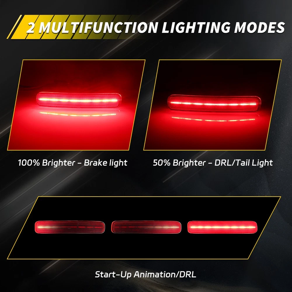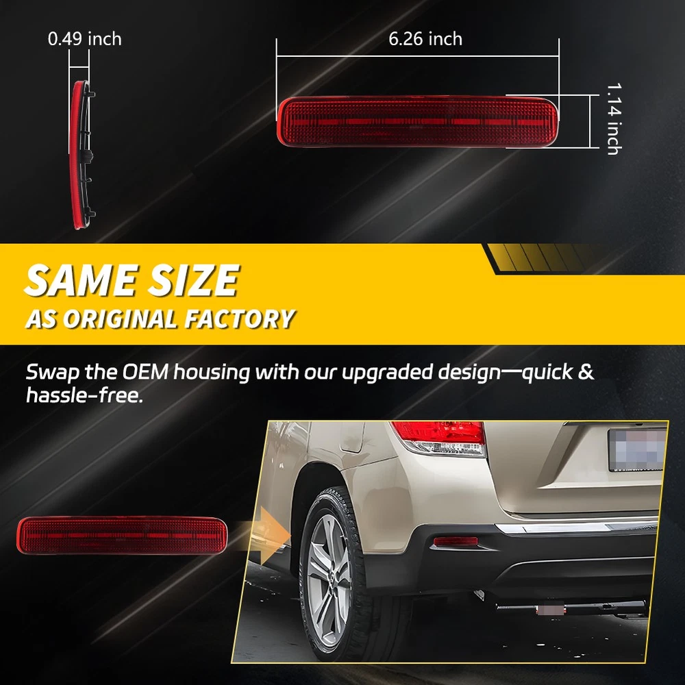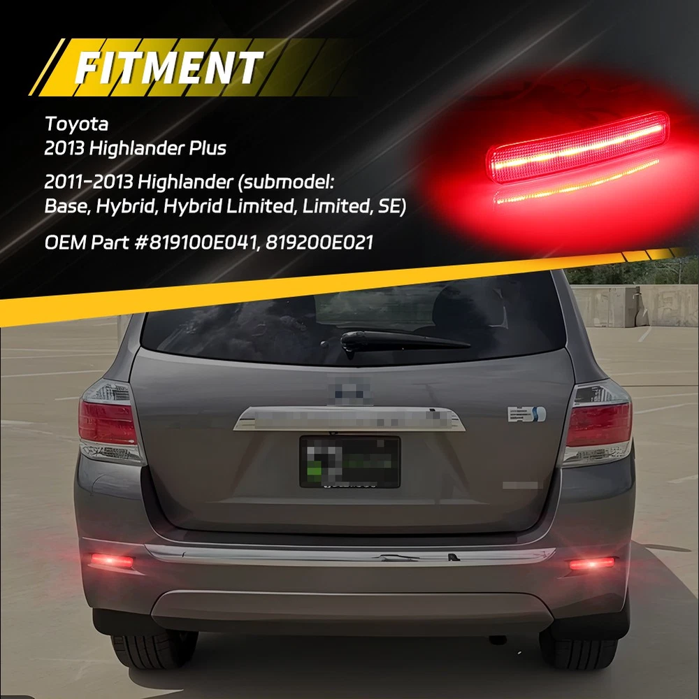 Smoke Red LED Rear Bumper Reflector Tail Brake Light For 11-13 Toyota Highlander