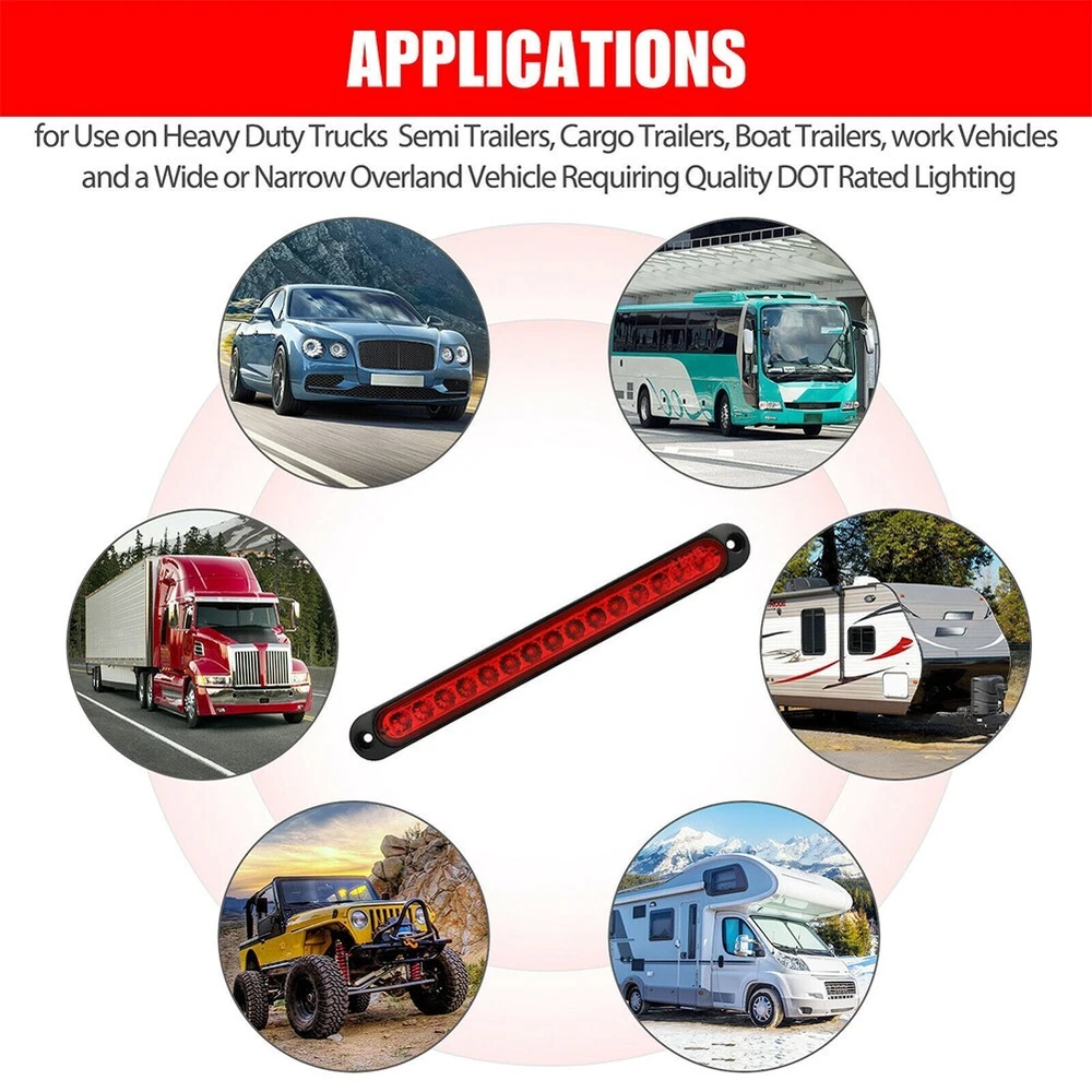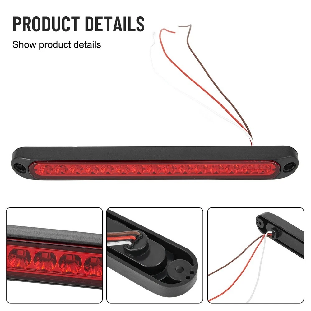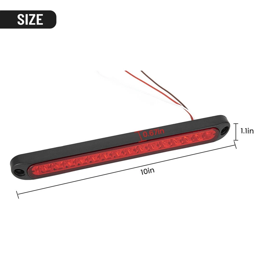 Red LED Stop Turn Tail Light Bar for Trucks Trailers Slim Waterproof 15 LEDs DESCRIPTION Features: *Ultra-slim line LED strip signal lamp. *Brighter than conventional incandescent . *Multi-volt 10-30V DC input & low current draw. *100,000 hour LED life span with solid state technology. *Waterproof and dust-proof. *Simple mount design. *Designed for applications where space is at a premium, they deliver the durability of maintenance LED technology and greater visibility providing increased safety. Description: *Functions as clearance, side marker or identification light, stop, turn, tail and brake light. *Product Name: LED Tail Light *Condition: Brand New *LED Light Color: Red *Voltage: 10-30V *IP Rate: IP 67 *Size: Length:25cm (length) x2.75cm (width) x1.6cm (depth) Purely Manual *Measurement, There May Be an Error of -3 Cm, Please Forgive Me. *Material: Sealed polycarbonate lens *Number of LED’s: 15pcs Wire Connection: .White Wire - Negative 2.Red Wire - Stop Light 3.Brown Wire - Tail Light Package Contents: * LED Tail Light Note: . The real color of the item may be slightly different from the pictures shown on website caused by many factors such as brightness of your monitor and light brightness. 2. Please allow slight manual measurement deviation for the data. POLICES Shipping Payment WARRANTY We only ship to confirmed Paypal addresses. Please comfirm that your paypal address is in line with your shipping address. Please kindly note that the c ombined shipping is not provided because the shipping fee is calculated by weight. Also, the each additional item means exactly the the same color and size. It takes about 7 -15 working days to US; about 10-30 working days to other countries. Transit time may be a little delayed because of the bad weather and customs inspection . If you do not receive your item within 30 working days since payment finished, please contact us immediately for further assistance. We accept payment via Paypal only. Payment must be made within 5 days, Non-payment may result in an UPI (Unpaid Item), eBay will automatically close your account if you accumulate 4 UPI's total. Import cutoms duties or taxes which are not included in item price, if any, are on buyer's responsibility. You can check with your local customs office for further information prior to bidding/buying. We strive for 100% customer satisfaction! Positive Feedback is very important to us. If you have any questions, p lease feel free to contact us via "Ask seller a question" . We will reply your email within 24 working hours.