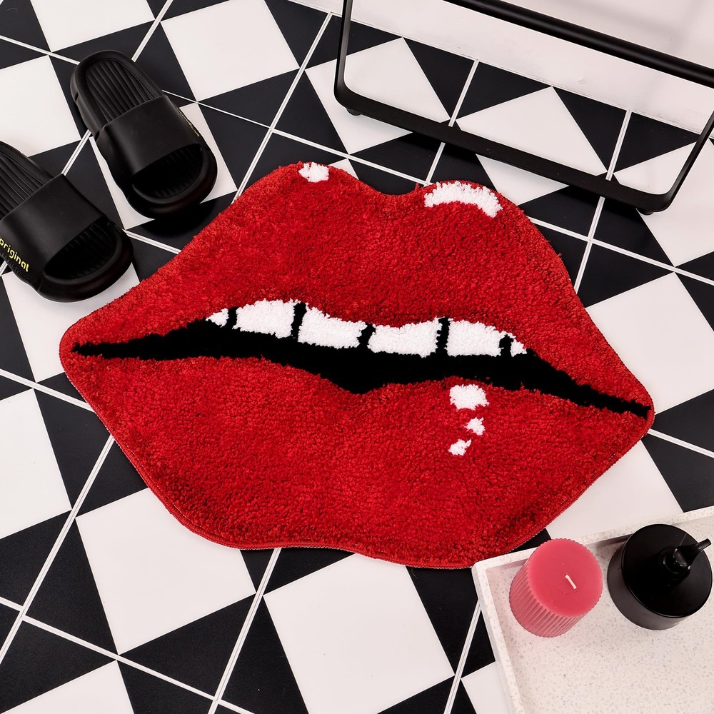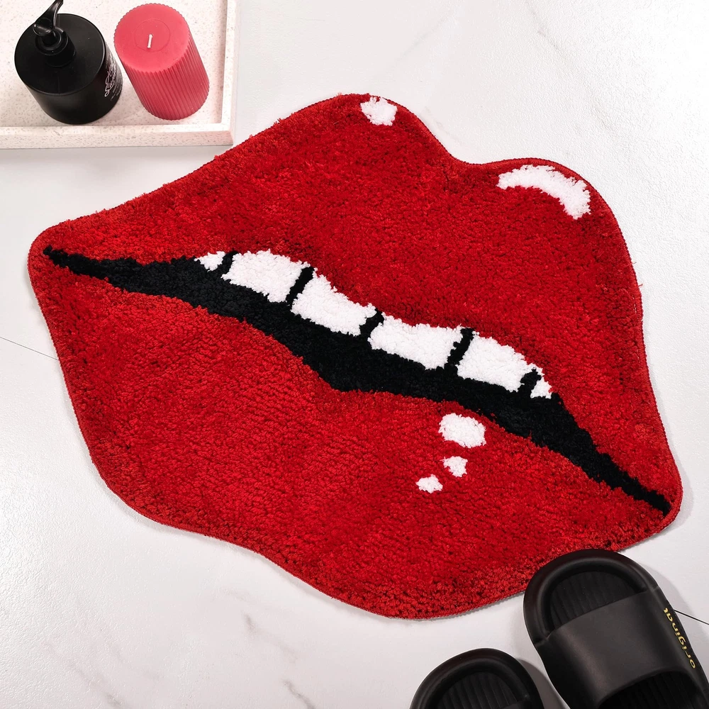 Theme: Lips Shaped Bathroom Rug. Materials: Height density polyester microfiber. Size: approximately 30 inches X 20 inches; Package: 1 cute plush bath rugs for bathroom non slip . Our cool rugs are the perfect size for most bathtub and shower configurations. It's made of durable density polyester microfiber with a non slip latex backing.Our red lips bath mat is also an excellent decoration for Valentine's Day Machine washable and easy to dry. Just throw the entire mat into the washing machine, wash it cold, hang it to dry or air dry. After washing, thick carpet rugs not shed and not fade, so that your funny bathroom carpet will keep the shape of the day you bought it.