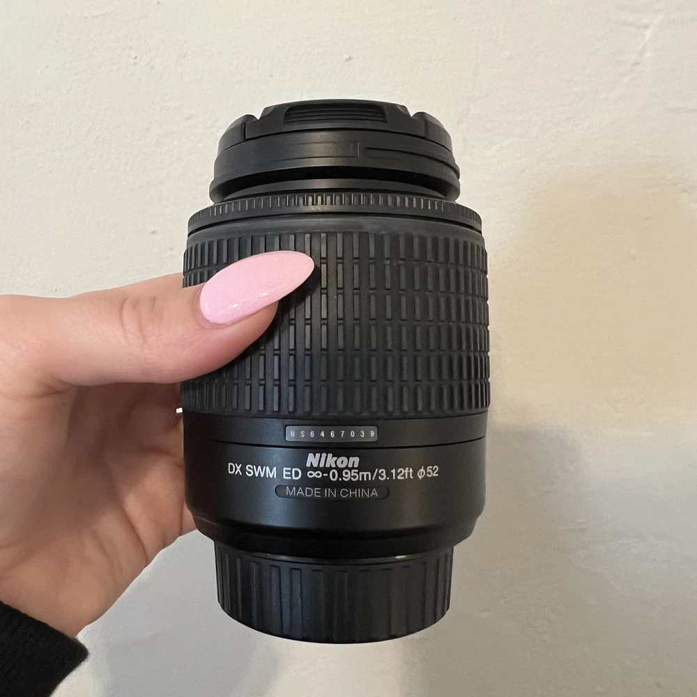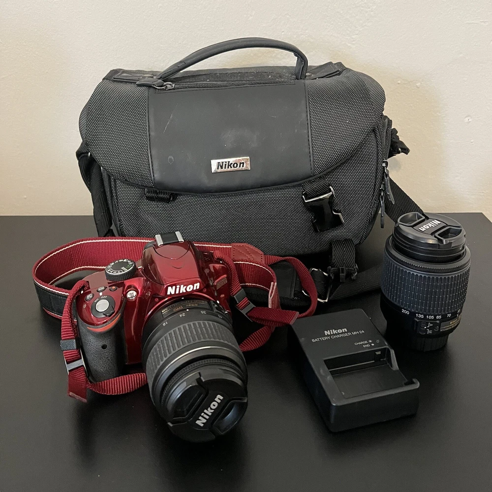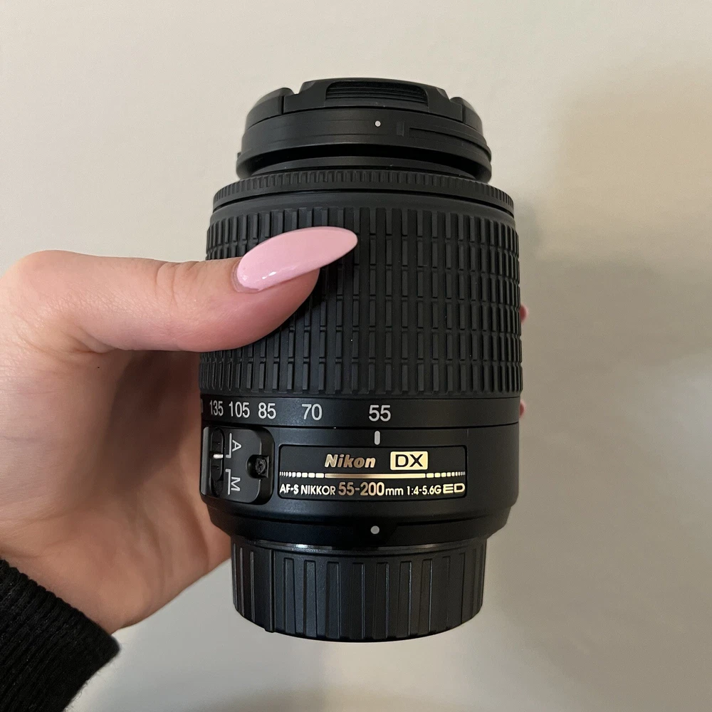Barely used — in “like new” condition. Bought when I thought I would get into photography but I never did. Price includes the camera, battery, charger, additional AF-S NIKKOR 55-200 mm 1:4-5.6G ED lense, and bag. The lense already on the camera is the AF-S NIKKOR 18-55mm 1:3.5-5.6G ED. Spec highlights: 24MP CMOS sensor ISO 100-6400 (plus ISO 12,800-equivalent Hi1 setting) Expeed 3 processing 3.0", 920k dot screen Full HD 1080p30 video (with 25p and 24p options) Microphone socket Twin IR remote receivers 4 frame-per-second continuous shooting Guide mode
