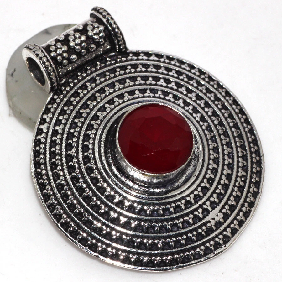 Red Onyx 925 Silver Plated Antique Gemstone Pendant 1.8" Elegant Gift JW