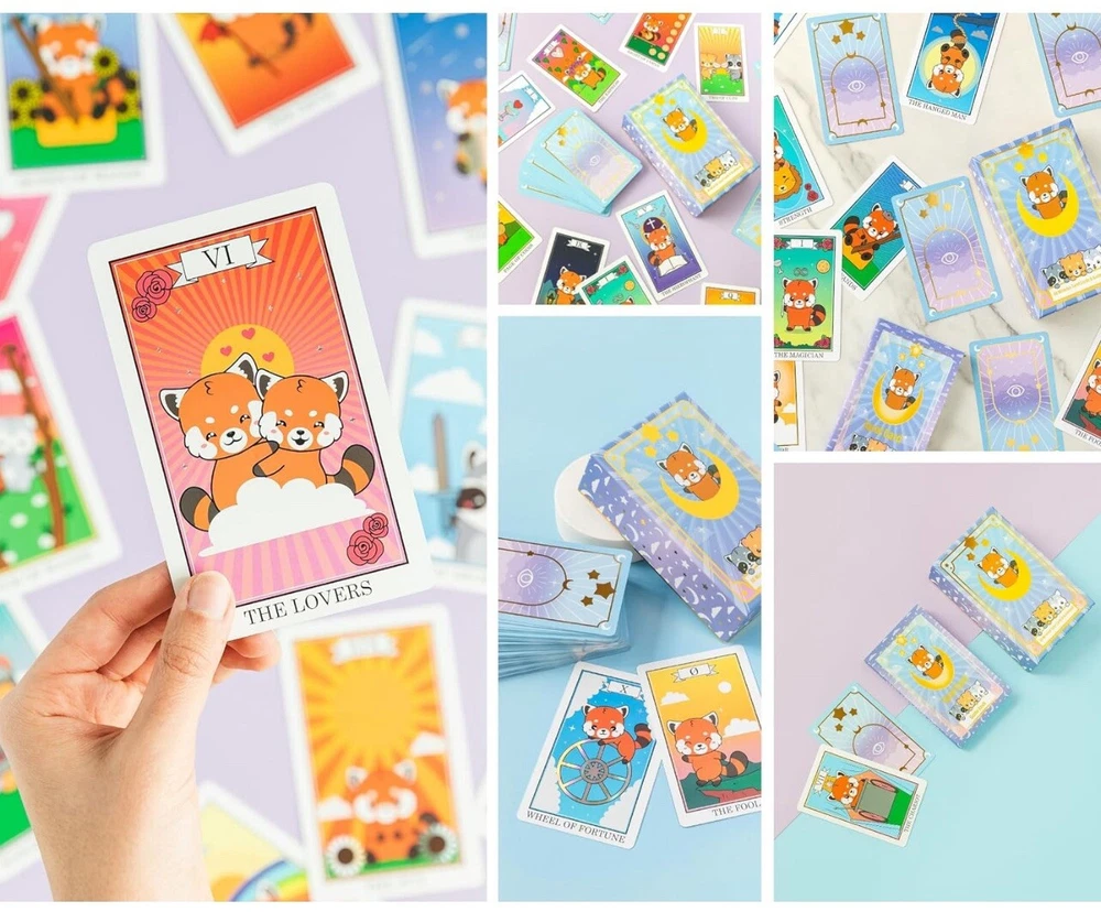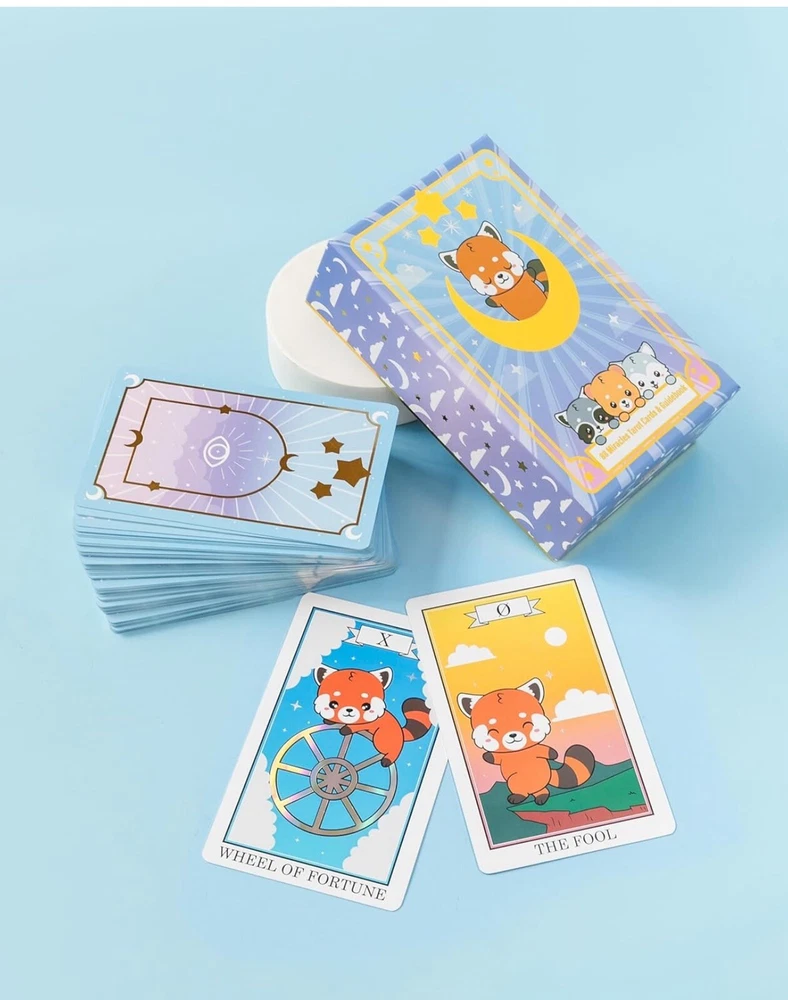 Red Panda & Friends 88 Miracles Tarot Card & Guidebook (NEW). Enchanting Design - Enter the mystical world of tarot with Red Panda & Friends Tarot Cards. These oracle cards offer vibrant prints and imagery that evoke a sense of mystery, serenity, and anticipation. Crafted by spiritual artists from the USA, each card is a window to accurate symbolic interpretation. Premier Quality & Durability - Constructed with the intention to accompany you through countless sessions of introspection and guidance, these tarot cards are made from high-quality materials. Their beautiful colors, refined edges, and the tactile pleasure they provide during shuffling and handling are a treat to inspire and endure. Comprehensive Guidebook Included - Improve your understanding of tarot with our guidebook, offering three times the insight found in typical manuals. This compendium of symbolic meanings delves into the past, present, and future, enriching your readings and expanding your interpretative skills with detailed explanations of each oracle card's significance. Instant Access to Online Course & Community - Whether you're a beginner eager to learn the art of tarot reading or an advanced practitioner looking to deepen your knowledge, our exclusive online course and community offer a space for growth and connection. Engage with fellow enthusiasts, share insights, and enhance your practice with the support of a like-minded collective. Perfect Gift of Mystical Insight - In the realm of tarot, the tradition holds that a deck received as a gift carries special energy and positive karma. Embrace this belief by gifting the Red Panda & Friends Tarot Cards to someone special or treating yourself with love and intention. It's an invitation to embark on a personal journey of discovery and enlightenment.