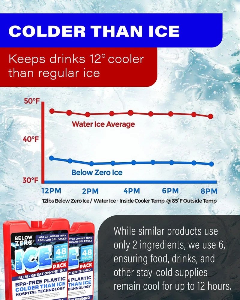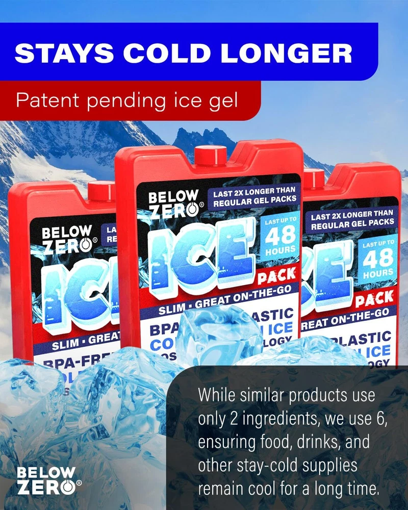 Unique Formulation for Superior Results Whether you’re packing a school lunch or planning a day trip, cool refreshments are essential. Ice packs help keep things cold, but most are effective for just a few hours. And if they break in transit, potentially toxic ingredients can leak onto your food. With patent-pending ice gel, has revolutionized standard cooler packs. Developed by American engineers, we improved the stay-cold technology hospitals use to transport blood. While similar products use only 2 ingredients, we opted for 6. Made with natural plant proteins, our non-toxic formula uses the best of science and nature to deliver packs that stay cold for up to 48 hours. Pre-filled large and medium sizes available in sets of 4 and 6 deliver the grab-and-go convenience a busy lifestyle needs. Grouped together or used individually, they effectively cool backpacks, lunch bags, and just about anything in between. And because they’re lightweight and compact, you can bring them on your next hike, park date, or fishing trip without weighing down your load. At , quality stands at the core of everything we do. Our packs are made with premium plastic, ensuring they don’t break in even the coldest temperatures. As reliable as they are effective, they’ll be a staple in your home for years to come. Why Choose Our Pre-filled Cooler Packs? - Stay cold for up to 48 hours - Convenient and versatile for everyday use - Lightweight, compact, and great for travel - Made with safe, natural, and non-toxic ingredients - Durable, break-resistant plastic construction STAYS COLDER LONGER: Featuring patent-pending ice gel, our cooler packs are as cold as they are long-lasting. While similar products use only 2 ingredients, we use 6, ensuring food, drinks, and other stay-cold supplies remain cool for up to 48 hours. CONVENIENT VERSATILITY: Pre-filled and available in sets of 4 or 6, our cooler packs deliver everyday convenience. Whether you carry a lunch bag, backpack, tote, or picnic basket, they can be combined or used individually to suit virtually any need. GREAT ON-THE-GO: Lightweight, compact, and available in two sizes (7.5 x 5.5 x 1.5" or 7 x 3.5 x 1.25"), our cooler pack is the ultimate travel companion. Perfect for camping, car rides, or beach trips, you’ll enjoy cold refreshments anytime, anywhere. SAFE, NON-TOXIC INGREDIENTS: We care about your health as much as you do. That’s why our cooler gel is made with natural plant proteins. Developed by American engineers, we improved the same technology used to keep blood cold during transport. DESIGNED FOR DURABILITY: Made with premium plastic, our cooler packs resist breaking, even in the coldest temperatures. Reflecting our commitment to reliable quality, is the brand families trust for safe, dependable products.
