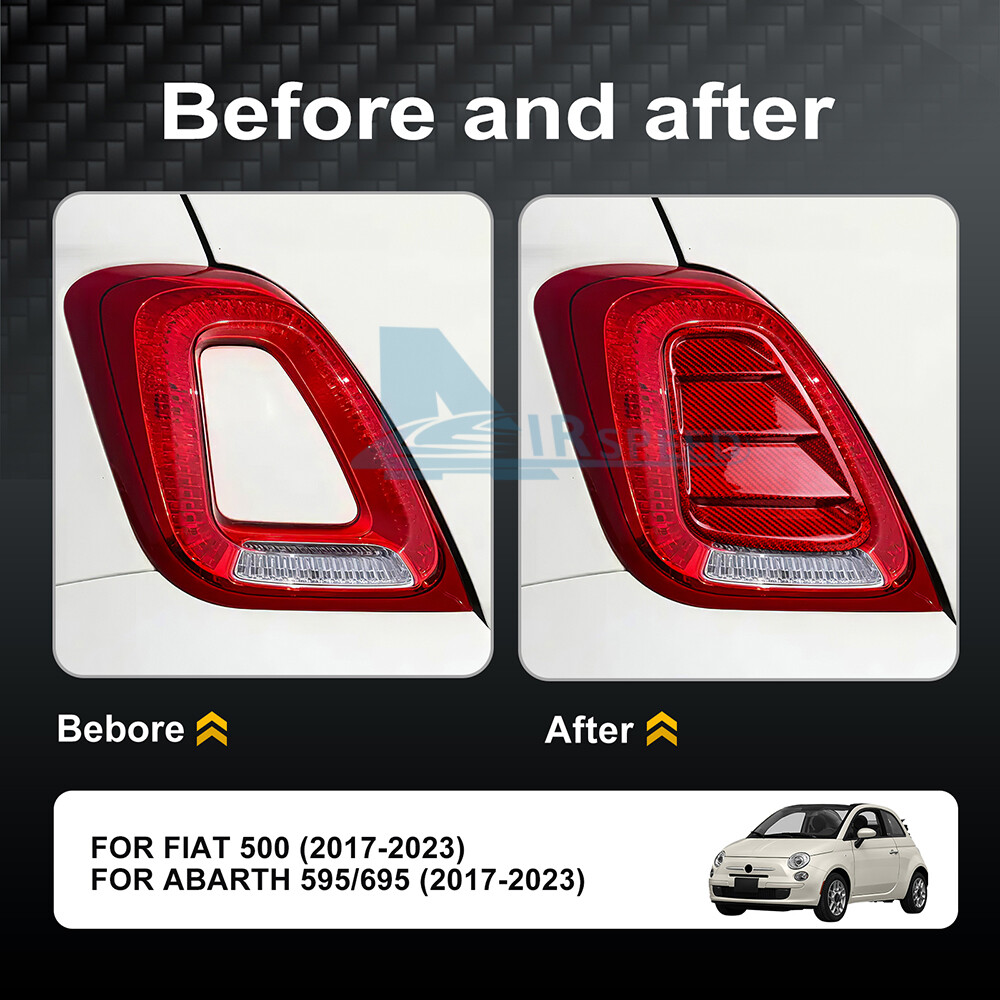 Product Detail Brand: AIRSPEED Material: Real Carbon Fiber Color: Red Quantity: 2PCS Use: Decoration Fixation: Stick up Description Products are made of high-quality carbon fiber material with nice textures Products are customized according to original sizes which fit perfectly Fitment For Fiat 500 / Abarth 595 2017-2023 designed by