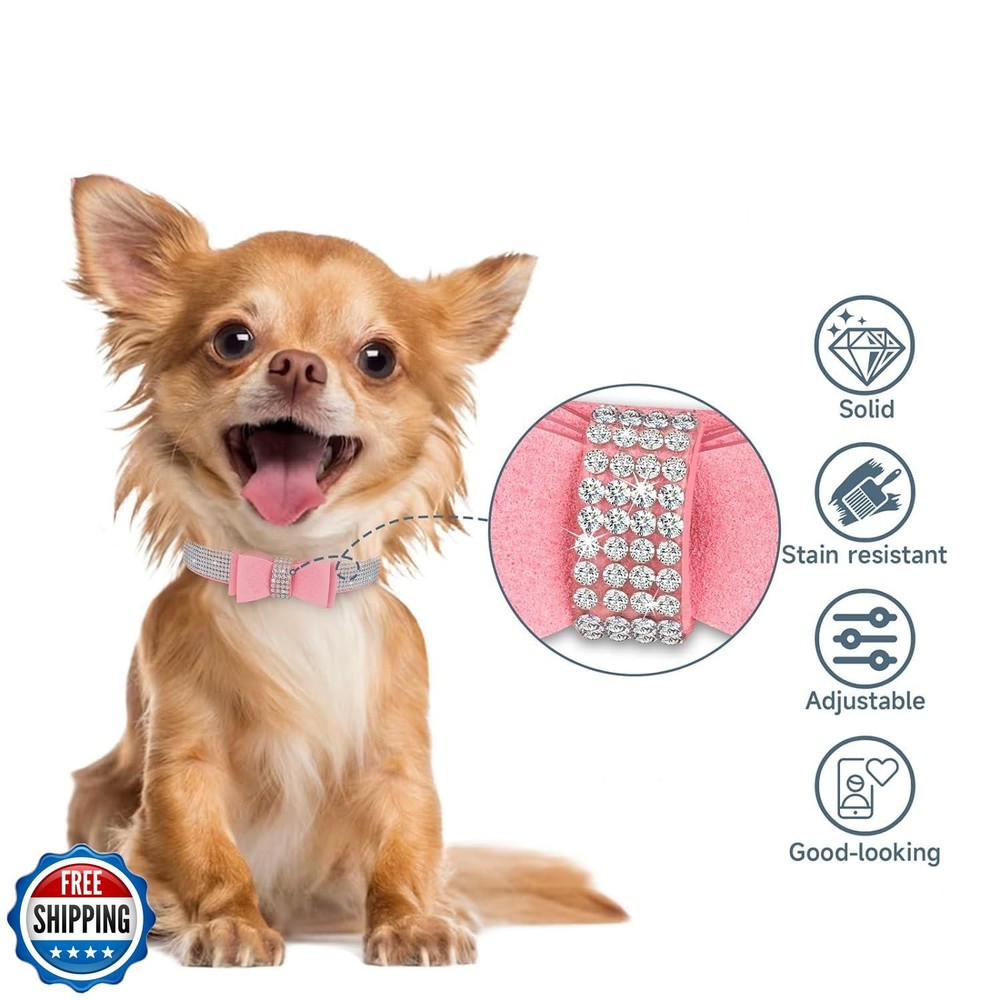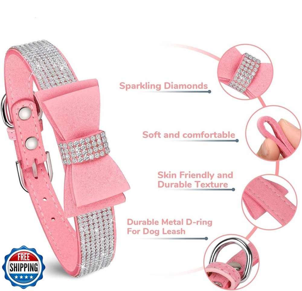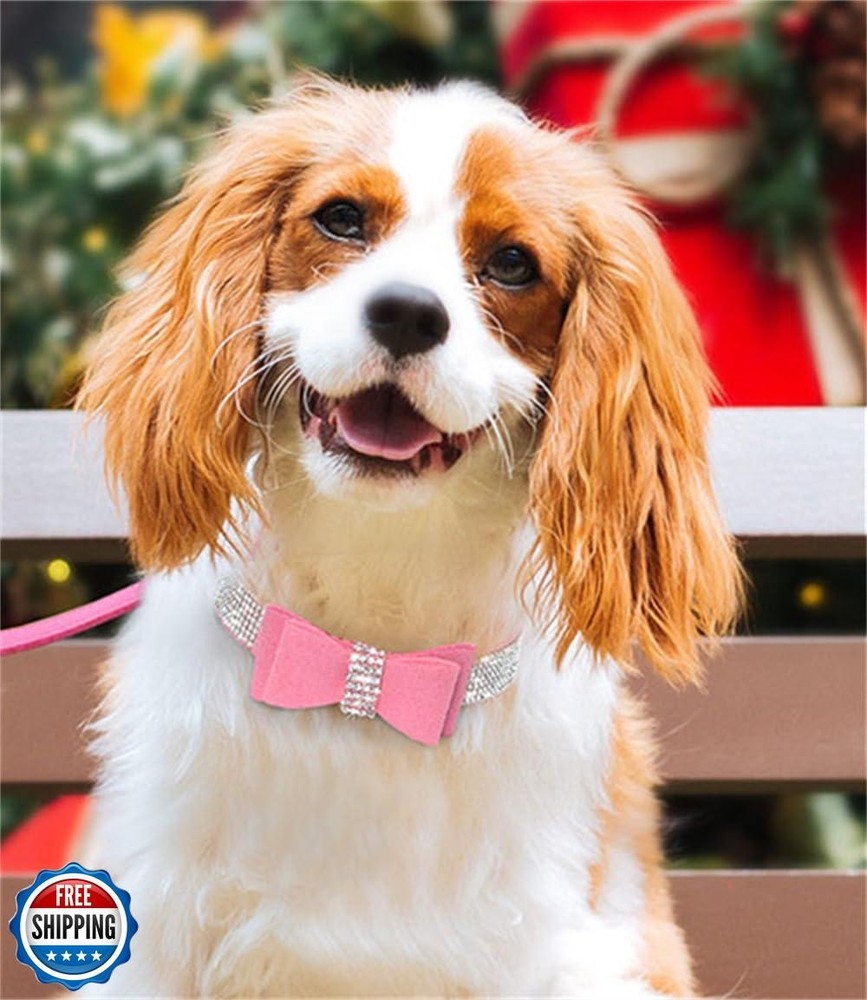 1. This adorable red dog collar is perfect for adding festive sparkle to your pup’s look! The rhinestone bowtie gives it a glamorous touch, while the soft suede material keeps it comfy for all-day wear. Fits small to medium dogs nicely—just double-check sizing before ordering. My little furry friend loves it and gets so many compliments! Great quality and super cute for holidays or everyday bling. Definitely recommend!