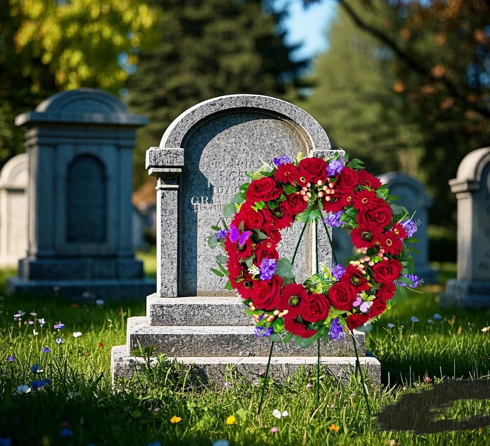This beautiful cemetery wreath is stunning right out of the box—no assembly needed! The rich red roses and mixed flowers look so lifelike, and the sturdy easel keeps it standing perfectly. It’s held up great through rain and wind, staying vibrant for months. Makes visiting a loved one’s grave feel special without the hassle of frequent replacements. Highly recommend for a lasting, elegant tribute.